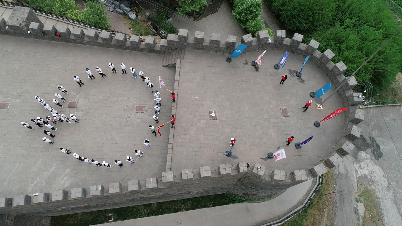 Diyarbakırlı sporculardan tarihi surlarda 'ay yıldız' koreografisi