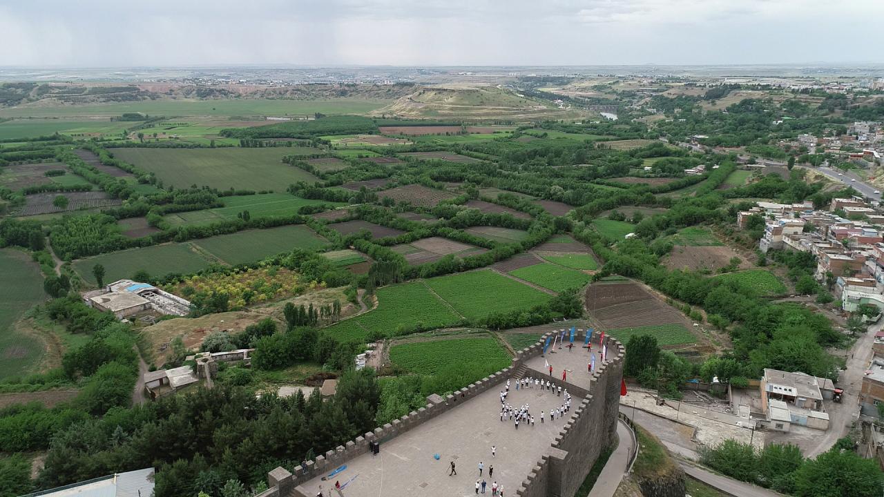 Büyükşehir Belediyesi ile Gençlik ve Spor İl Müdürlüğü iş birliğiyle koronavirüs salgınına yönelik tedbirler alınarak düzenlenen etkinlikte, Hevsel Bahçeleri yakınındaki Keçi Burcu`na çıkan çeşitli branşlardaki 40 sporcu, `ay yıldız` koreografisi oluşturarak, İstiklal Marşı`nı okudu.