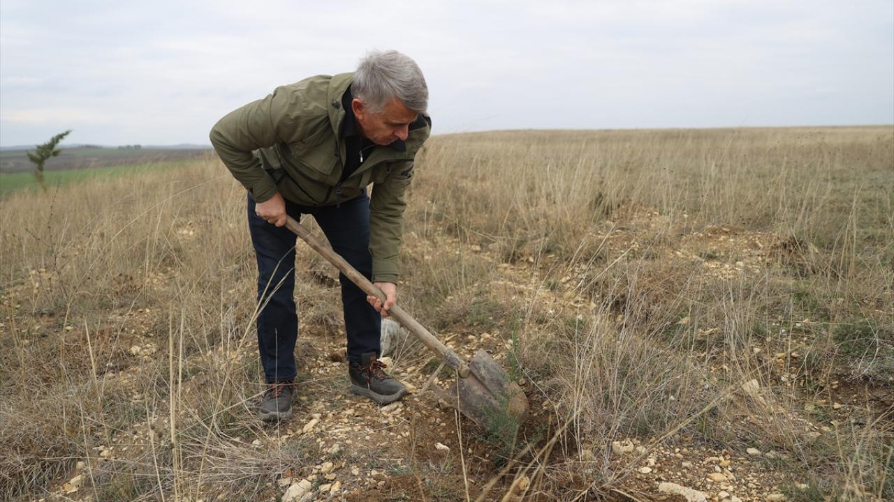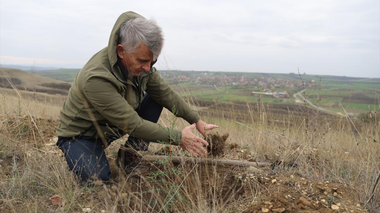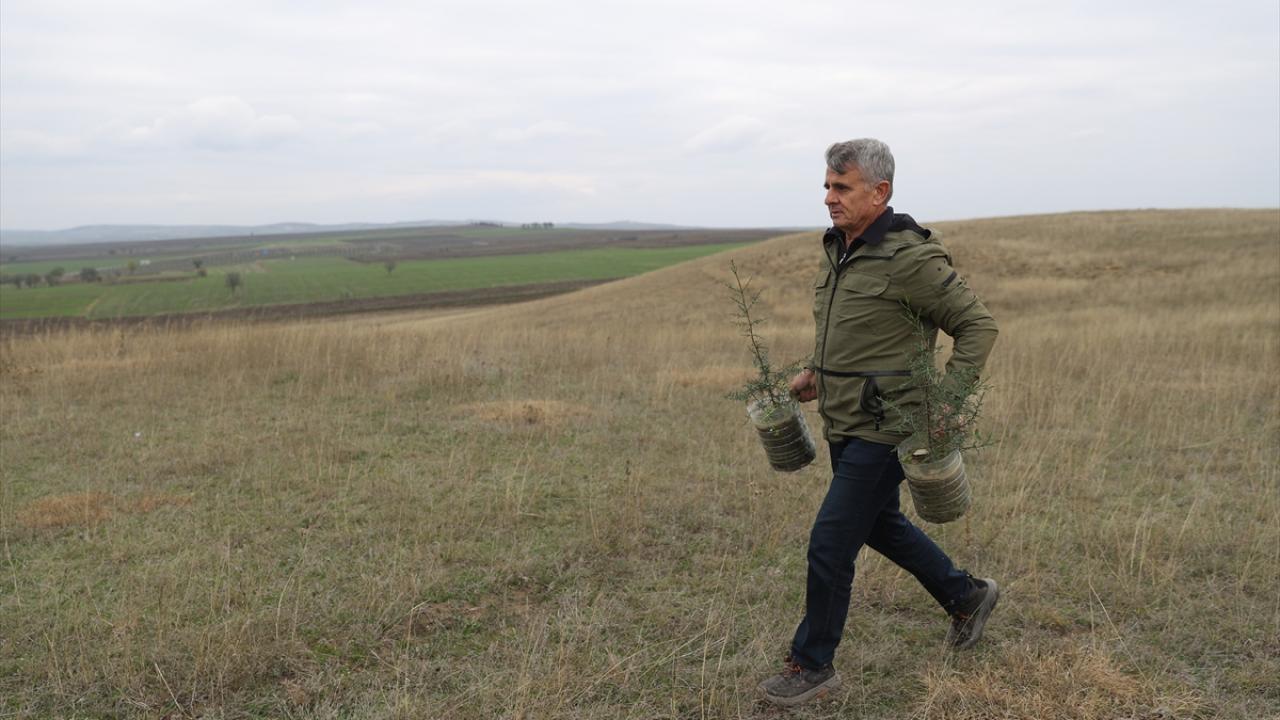Mesleğini memleketi Edirne`de Hasan Rıza Güzel Sanatlar Lisesinde sürdüren ve ders bitimlerinde soluğu doğduğu köyde alan 30 yıllık öğretmen Mehmet Duğan, izin verilen arazilerde fidanları toprakla buluşturuyor.