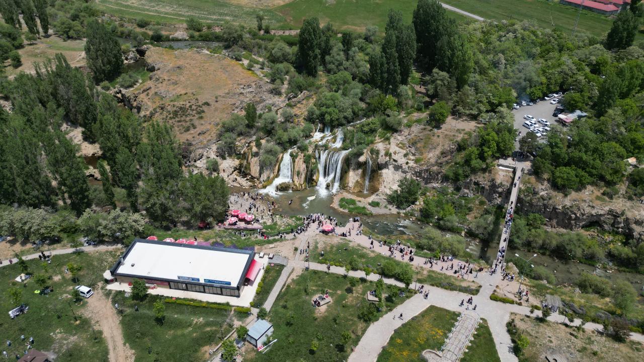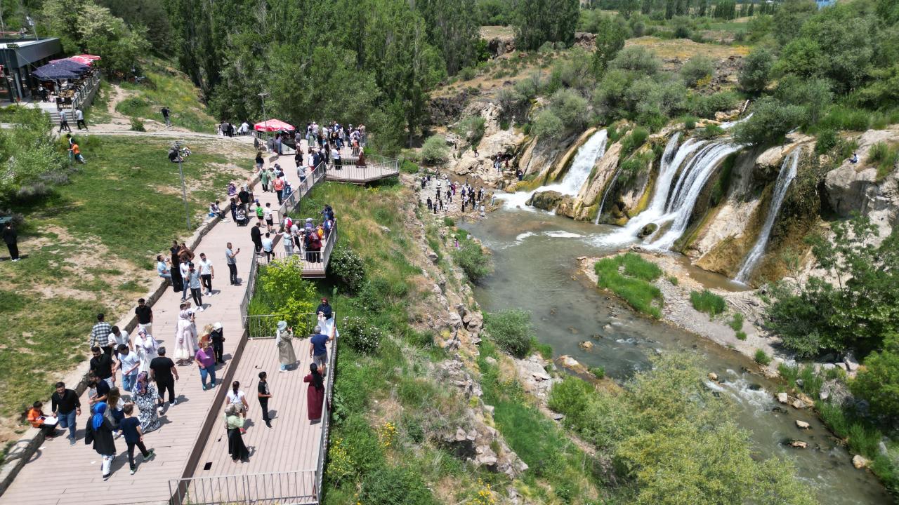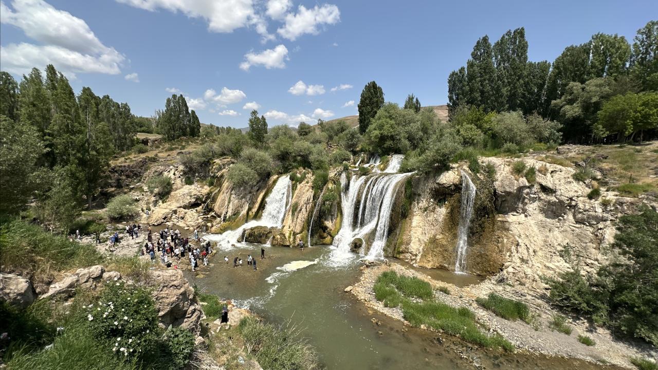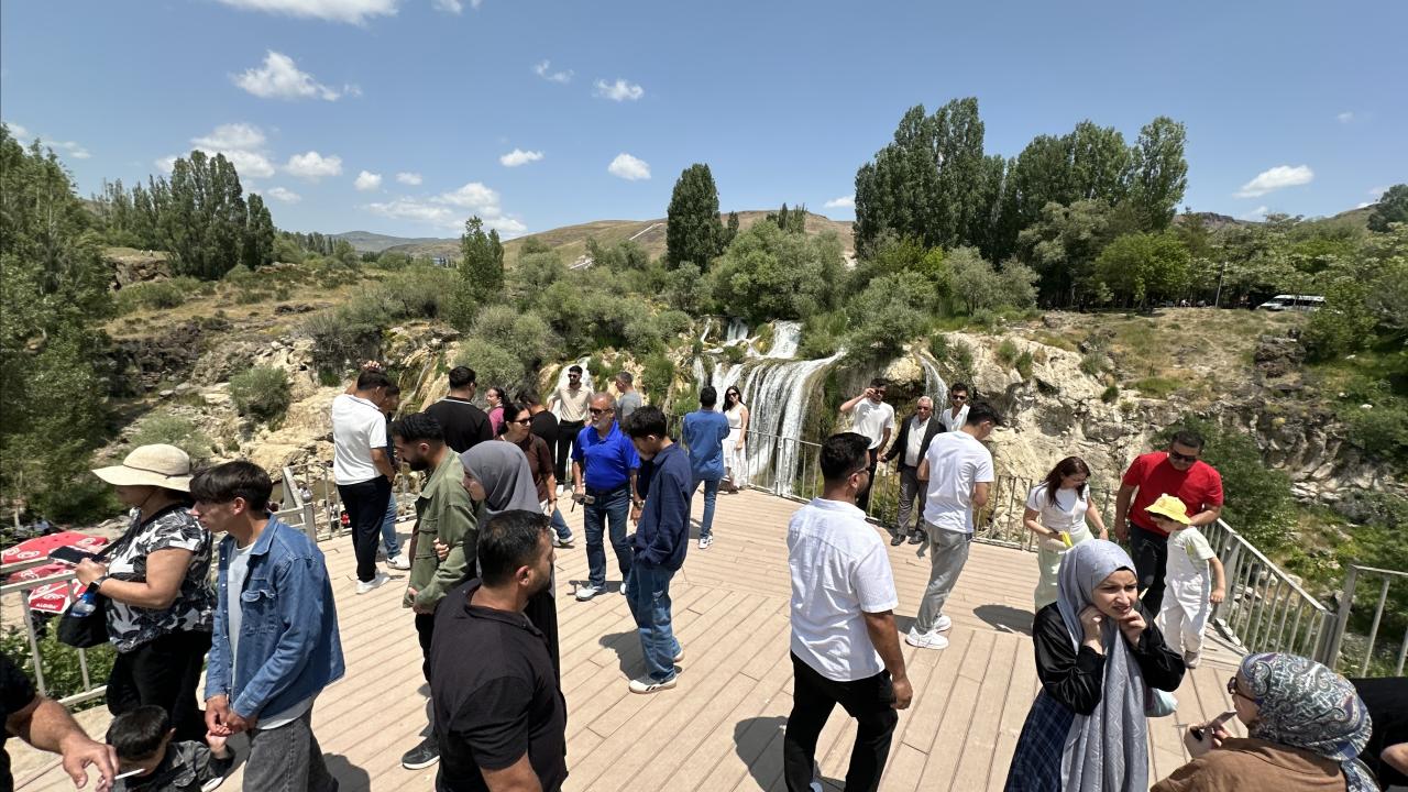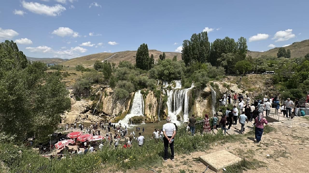 Metrelerce yükseklikten akan suyuyla ziyaretçilerin ilgi odağı olan şelale, Kurban Bayramı tatilini fırsat bilenlerin de uğrak noktası oldu.