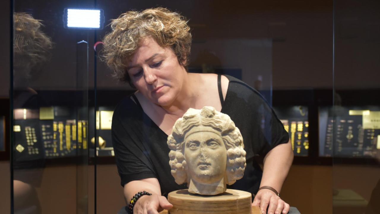 Eserler hakkında bilgi veren müze uzmanı Elvan Tural Tercan, "Doğa tanrısı `Dionysos`a ait 2 heykel başı. İlki Roma dönemine ait 2 bin yıllık bir eser. İkincisi Helenistik döneme ait 2 bin 300 yıllık eser. Her ikisi de mermer malzemeden yapılmıştır. İlki Efes Antik Kenti`nden 1930 yılında müzemize geldi. Koruma amaçlı depoya alındı. 92 yıl sonra sergiye çıktı. Diğer heykel başı da bölgemizden geldi. Anadolulu, meyve ağaçlarıyla ilişkili bir tanrı. Bu nedenle adına festivaller düzenlenmiş" dedi.