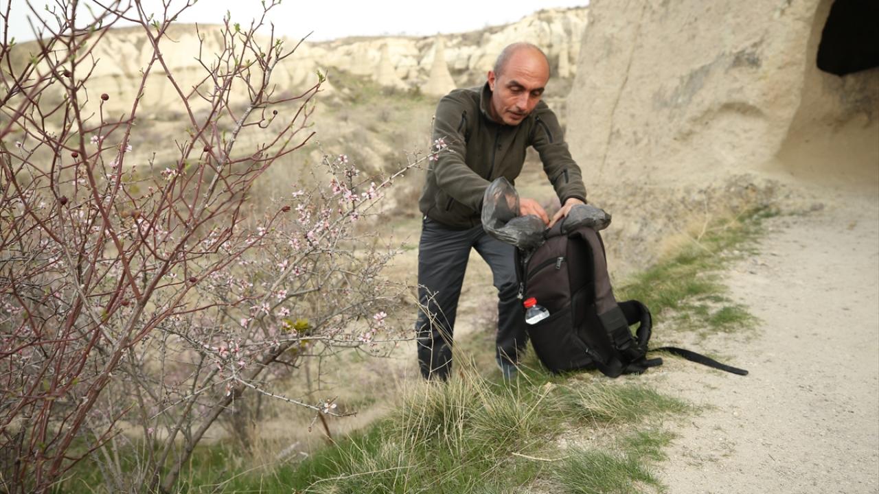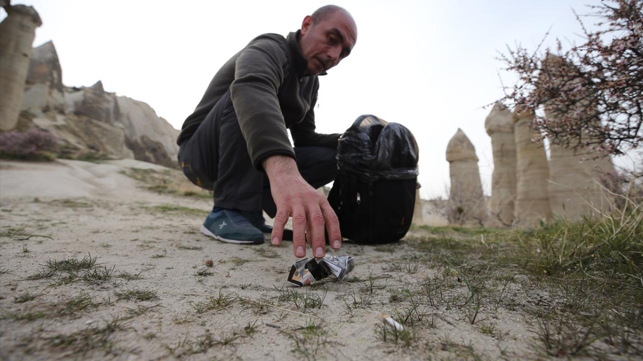 Nevşehir Emniyet Müdürlüğü personeli polis memuru Yıldırım Tosun, mesaiden arta kalan vakitlerinde Kapadokya'da peribacalarıyla kaplı vadilerde hem spor amaçlı yürüyüş yapıyor hem de karşılaştığı çöpleri toplayarak çevre duyarlılığı konusunda örnek davranış sergiliyor.
