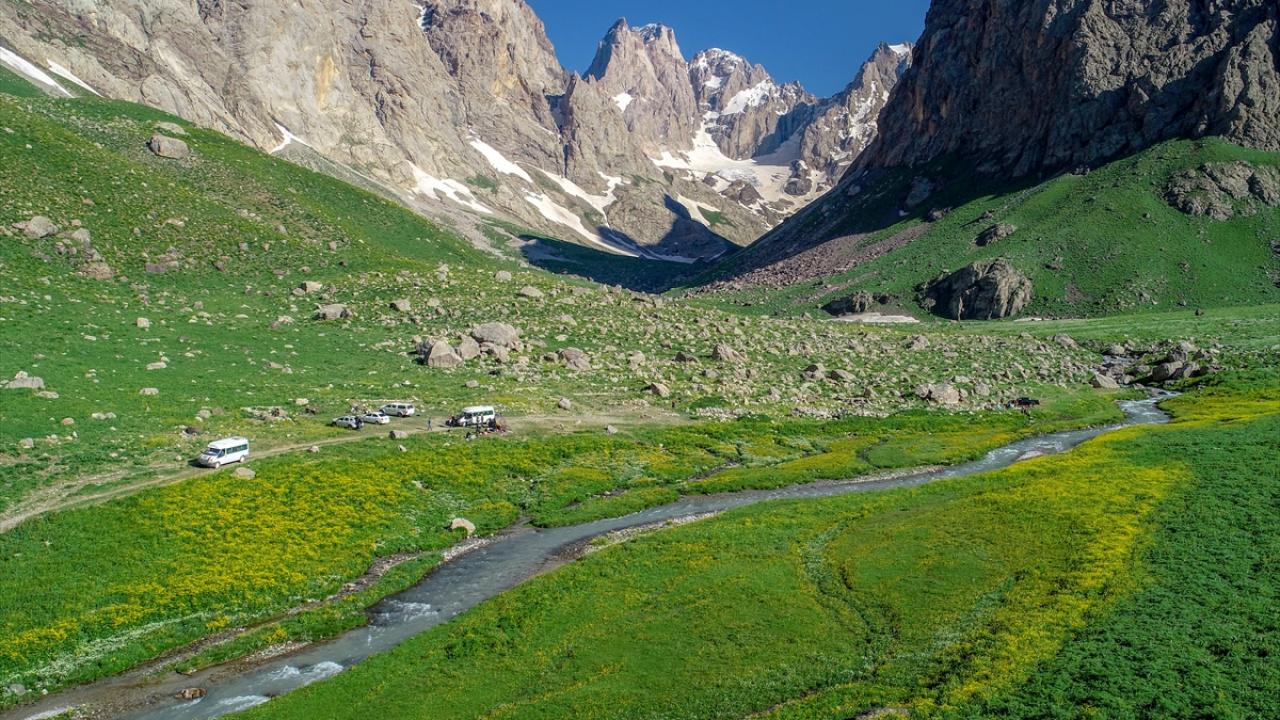 Hakkari`ye 45 kilometre mesafede bulunan Cilo Dağlarına özel ve tur operatörlerinin araçlarıyla ulaşım sağlanıyor.