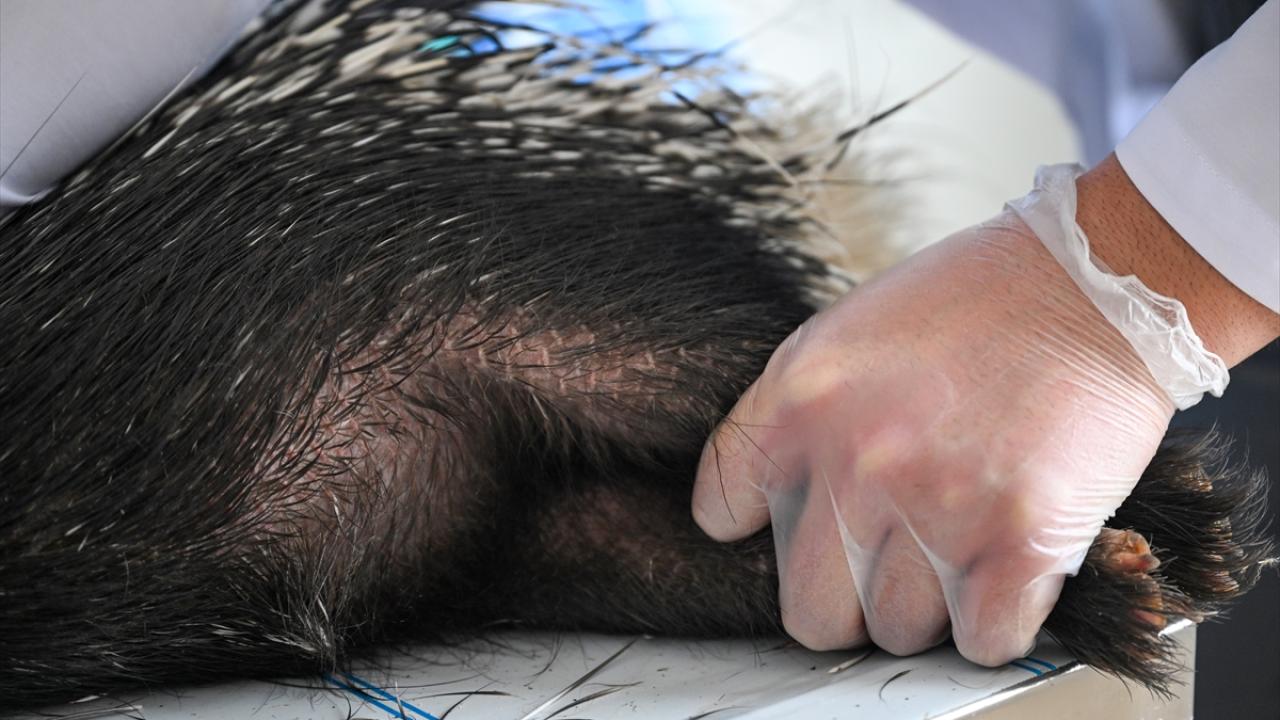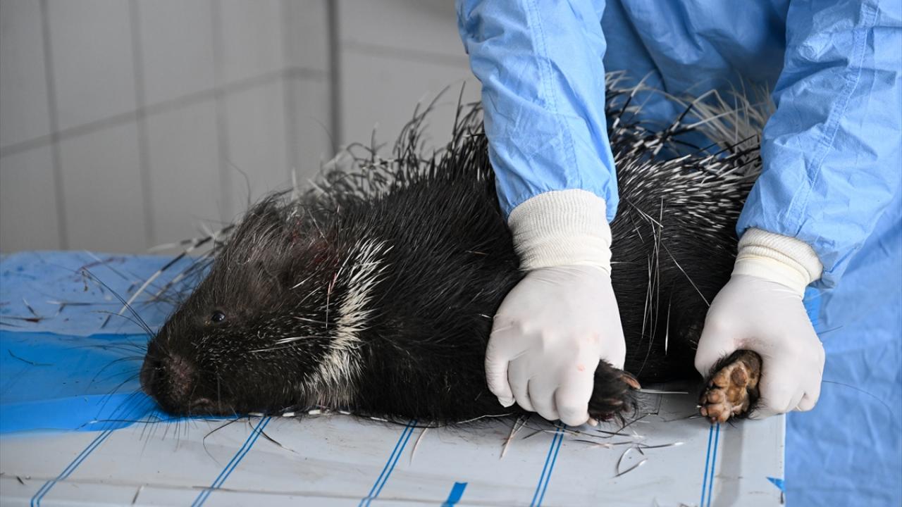 Hakkari'de yaralı ve bitkin halde bulunan Hint oklu kirpi, Van Yüzüncü Yıl Üniversitesi (YYÜ) Yaban Hayvanları Koruma ve Rehabilitasyon Merkezi'nde tedavi altına alındı.