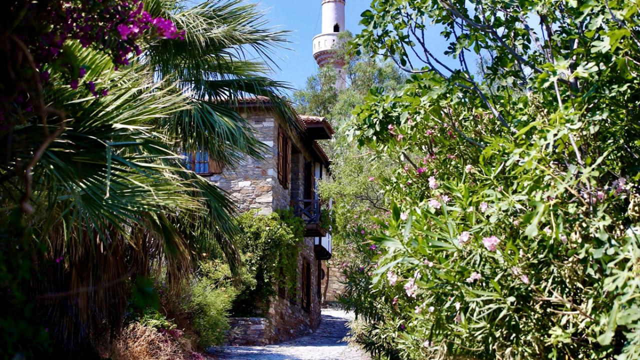 Dilek Yarımadası Büyük Menderes Deltası Milli Parkı sınırlarında yer alan ve en fazla 2 katlı olan evlerin yapıları, ahşap balkonları, taştan daracık sokakları ve Ege Denizi`ni gören manzarasıyla ziyaretçisini tarihte yolculuğa çıkarıyor.
