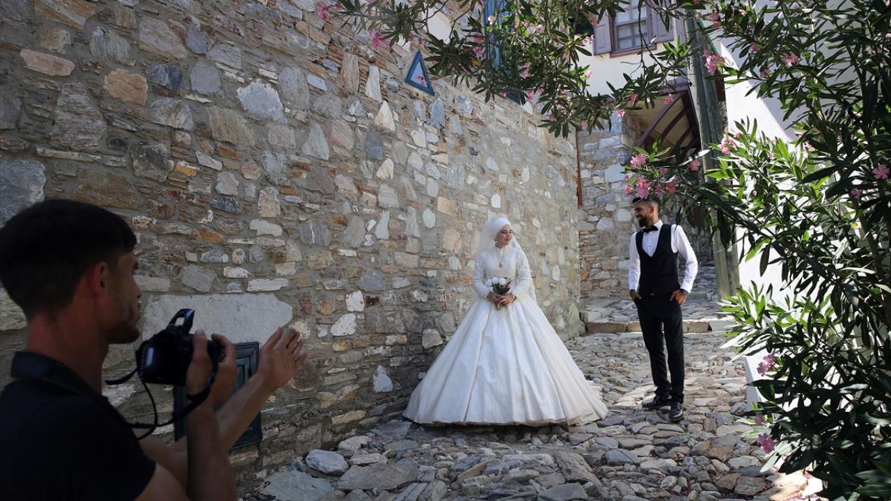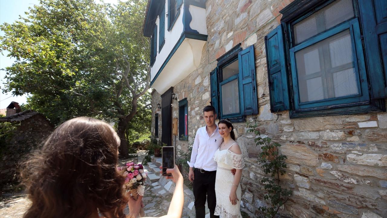 Nikahının ardından fotoğraf çektirmek için Doğanbey`e gelen Büşra Gönül ise "Burası tamamen tarih kokuyor. Evler efsane güzel. Tamamen tarih kokuyor." diye konuştu.