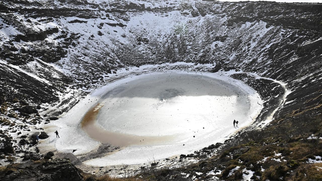 Yaklaşık birkaç 6 bin 500 yıl önce meydana gelen volkanik patlama sonucu oluşan Kerid Krateri, kırmızı volkanik kaya yapısı ve içinde biriken turkuaz renkli suyla İzlanda`nın dikkat çeken doğal oluşumları arasında yer alıyor.