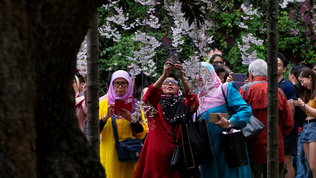Baharla birlikte açan kiraz çiçekleri, yerli yabancı herkesin ilgisini çekiyor.