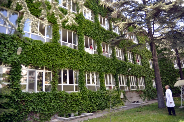 Afyonkarahisar Mesleki ve Teknik Anadolu Lisesi, 42 yıl önce okul çalışanı tarafından dikilen sarmaşığın tüm binayı sarması sayesinde botanik bahçesini andırıyor.