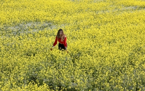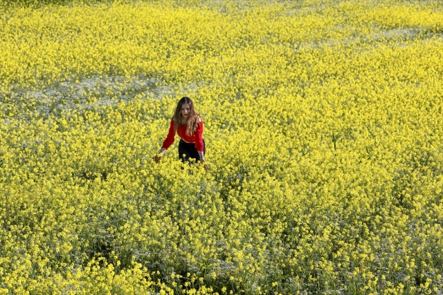 Van Erciş kara yolu güzergahında bulunan boş tarlalarda açan sarı çiçekler görsel şölen sunuyor. Yoldan geçen vatandaşlar yol kenarındaki tarlalarda fotoğraf çekmeyi ihmal etmiyor.