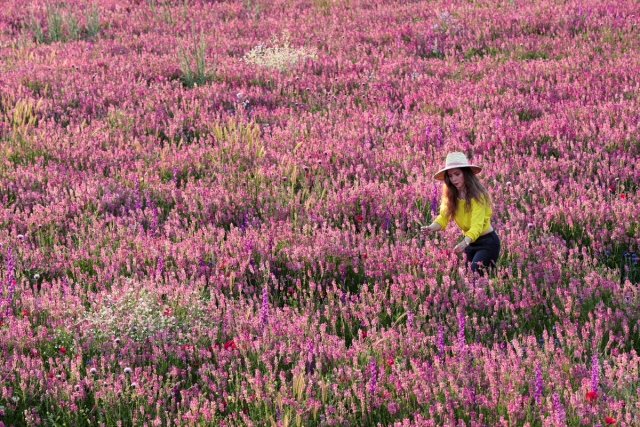 Van Erciş kara yolu güzergahında bulunan boş tarlalarda açan mor çiçekler görsel şölen sunuyor. Yoldan geçen vatandaşlar tarlalarda fotoğraf çekmeyi ihmal etmiyor.