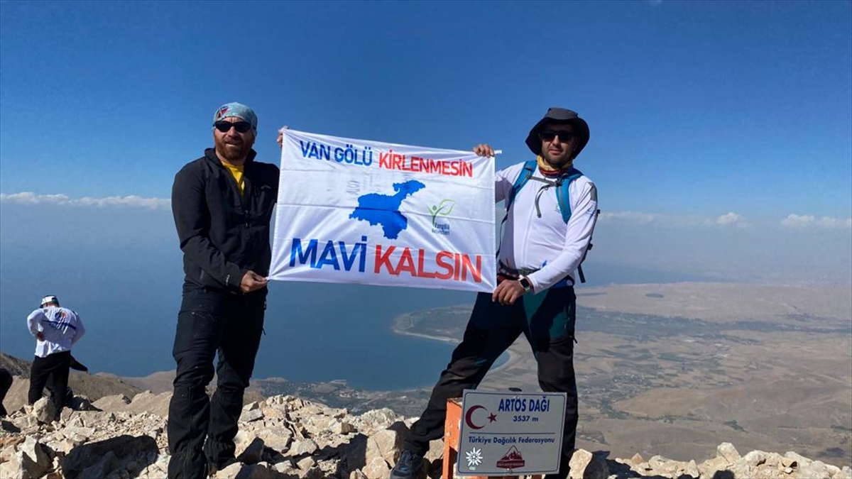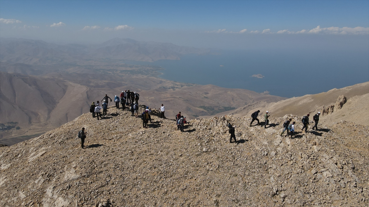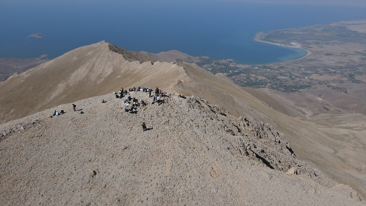 ''Van Gölü Aktivistleri Derneği'' üyelerinden oluşan yaklaşık 50 kişilik grup, Van Gölü konusunda farkındalık oluşturmak amacıyla 3 bin 537 rakımlı Artos Dağı'na tırmandı.