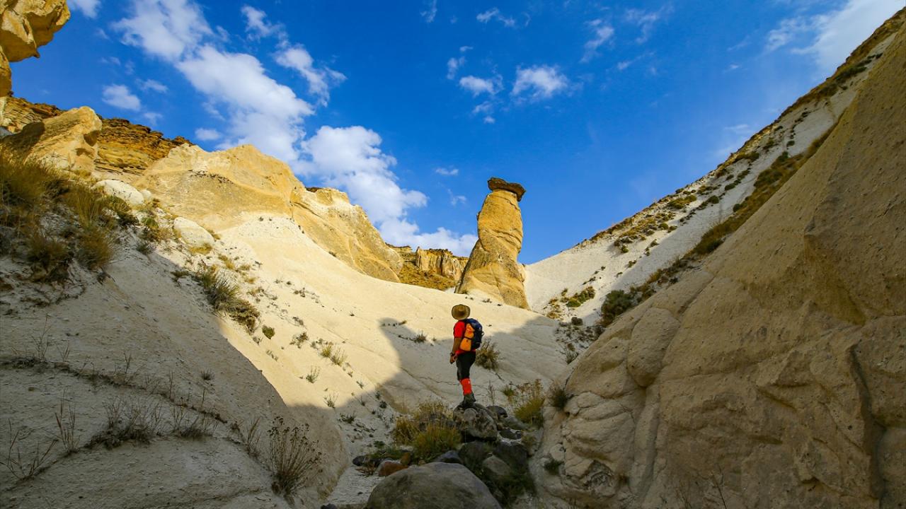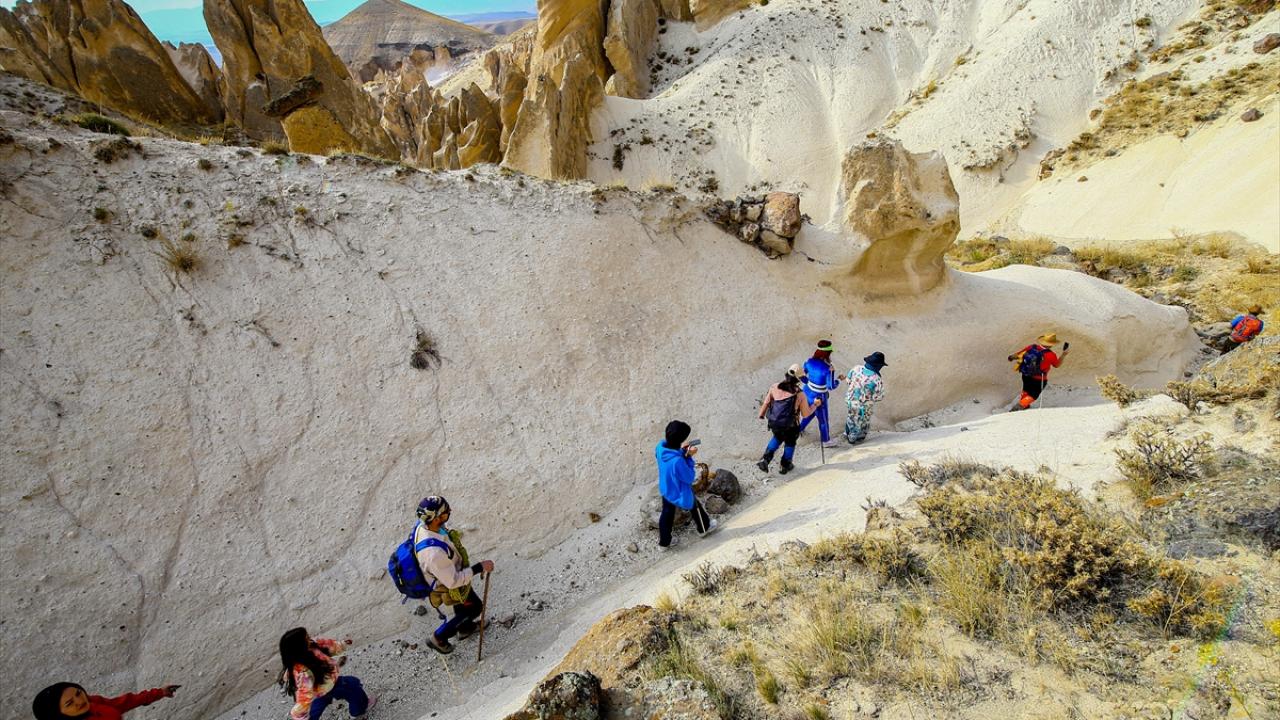 Vadi Doğa Sporları Kulübü`nün düzenlediği etkinlik kapsamında bölgeye giden doğaseverler, peribacalarını ve aynı alandaki tünel, mağara ve kaleyi gezdi, fotoğraf çekti.