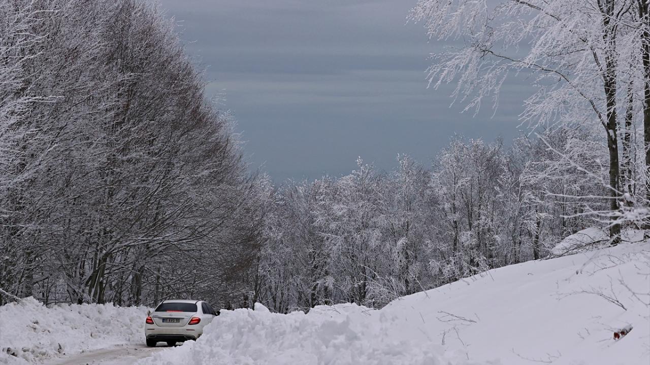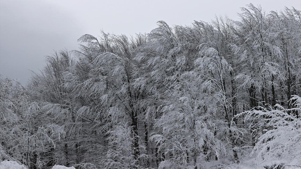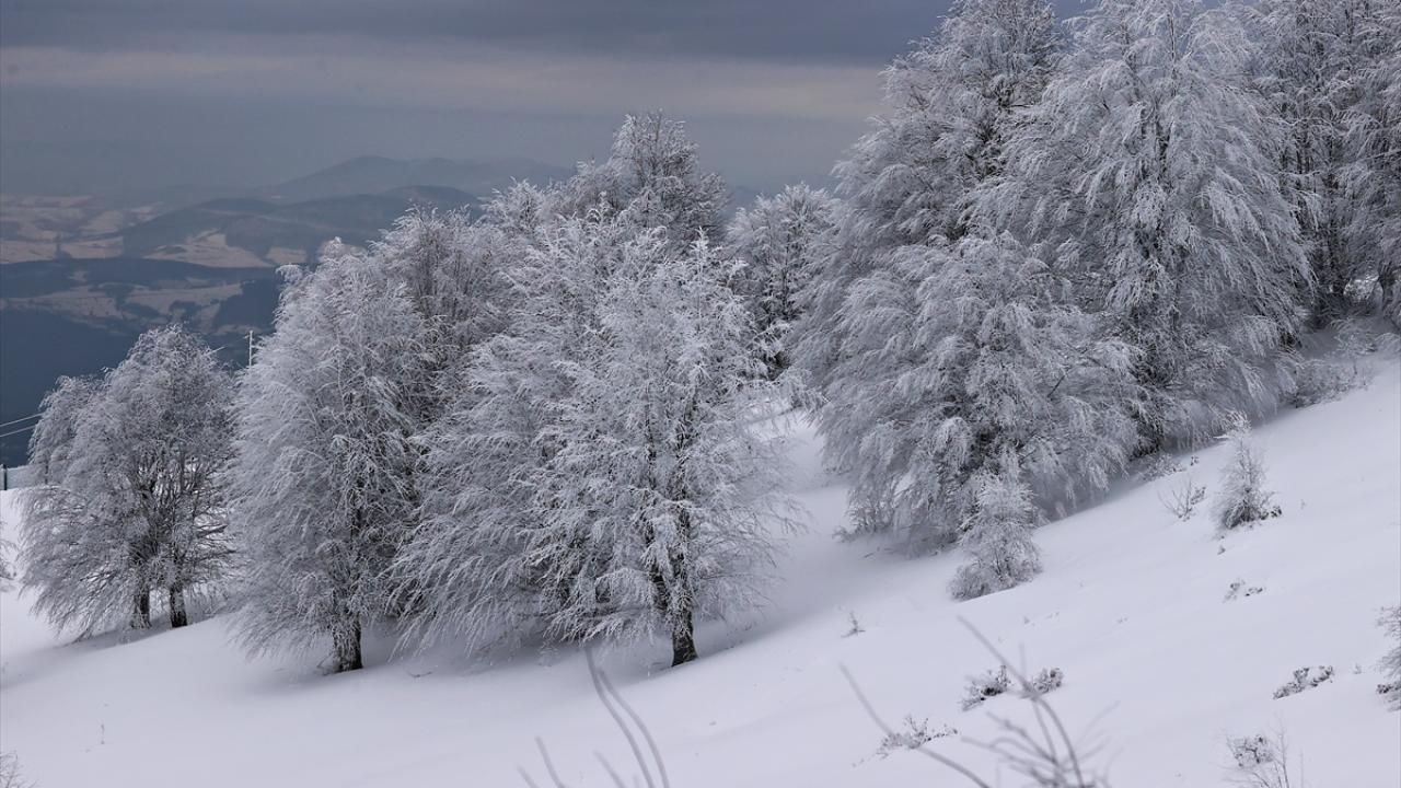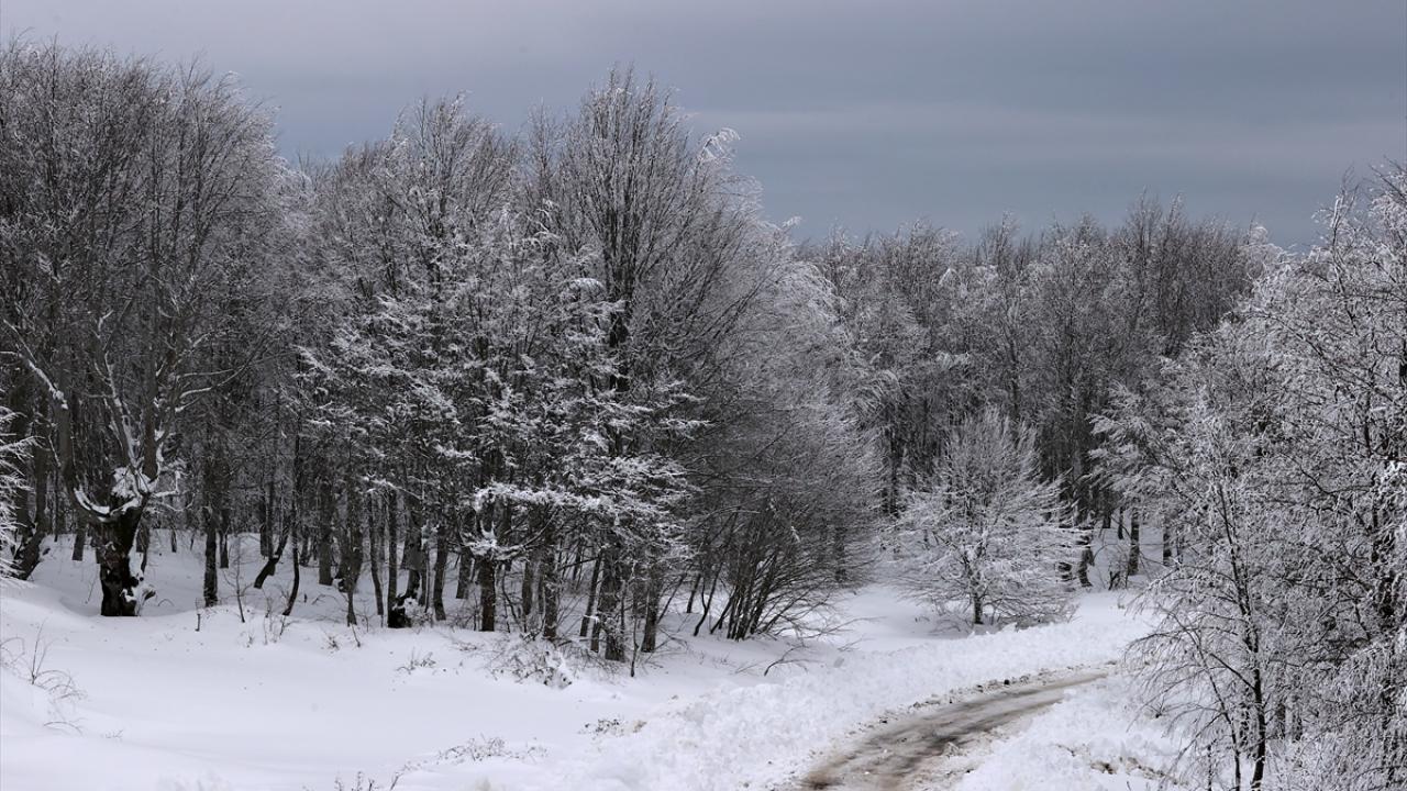 Kar yağışının ardından etkileyici güzelliğe bürünen Kocadağ Yaylası, dronla görüntülendi.