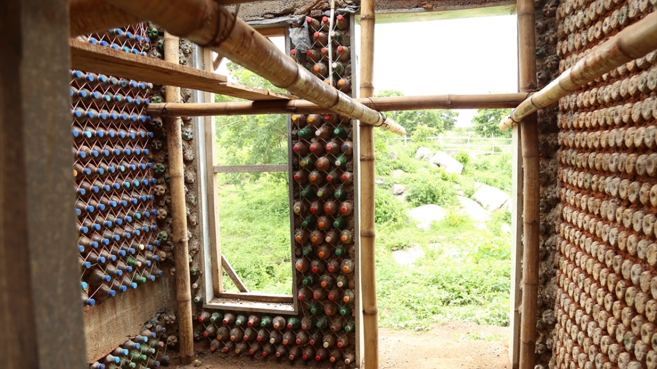 Doğayı korumak için plastik şişelerden ev inşa etti