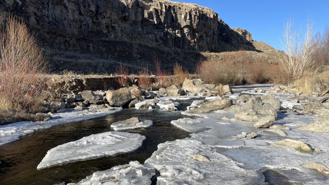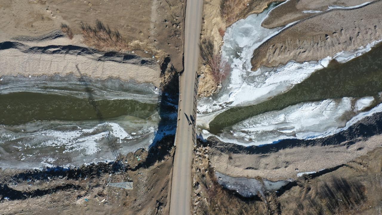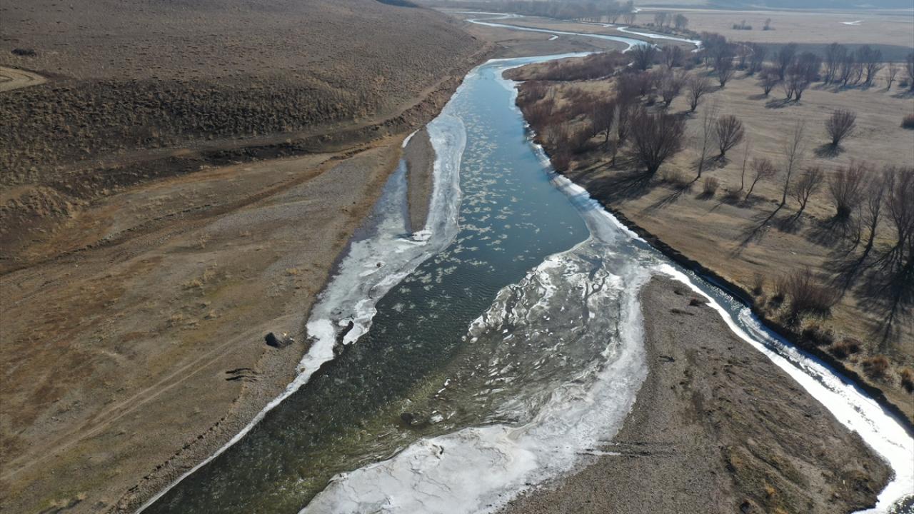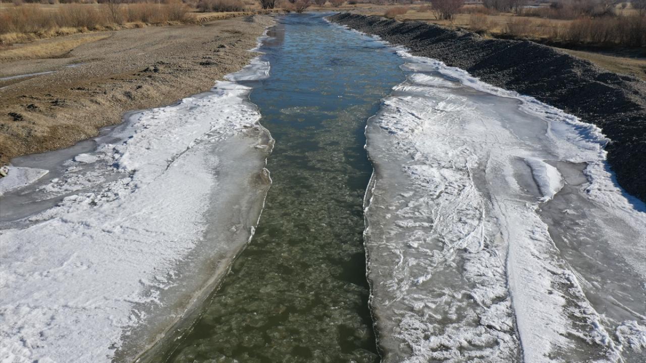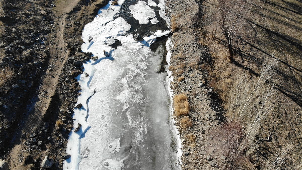 Doğu Anadolu'da dere ve göletlerin yüzeyi buzla kaplandı