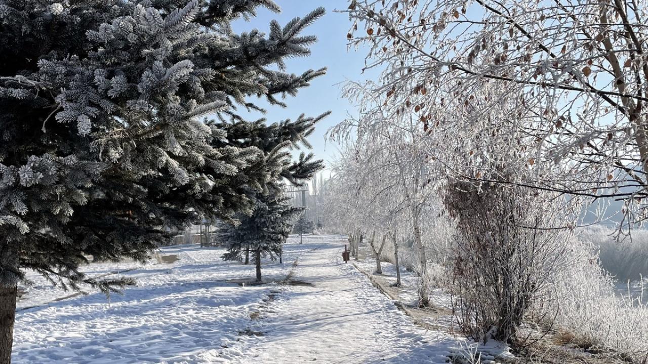 Ardahan`da etkili olan soğuk hava nedeniyle ağaçlarda kırağı oluştu.