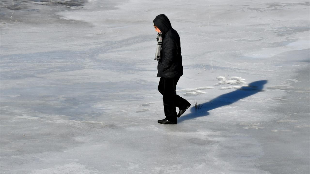 Erzurum, Kars, Ardahan, Tunceli ve Ağrı'da soğuk hava nedeniyle dere ve göllerin yüzeyi buzlandı.