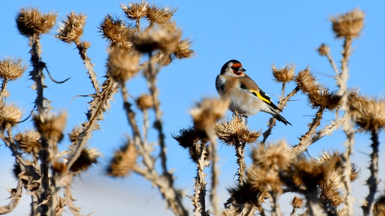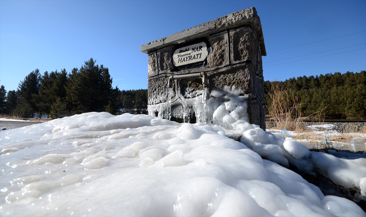 Ormanlık alan içinde bulunan çeşmeler buzla kaplandı. Saka kuşları yazdan kalan bitkilerin tomurcuklarından beslenmeye çalıştı.