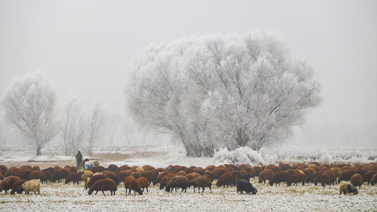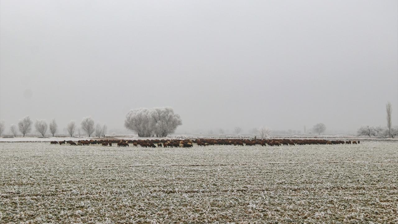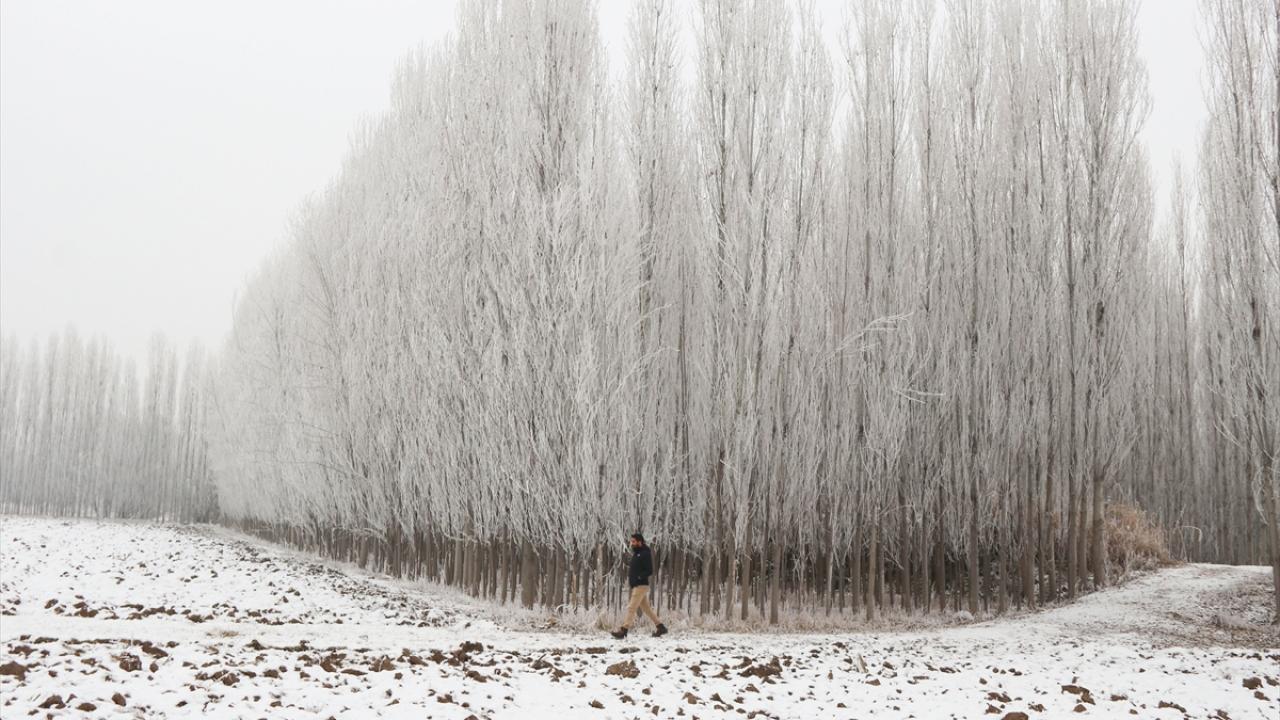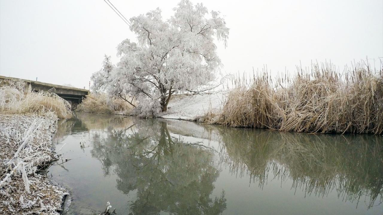 Iğdır'da hava sıcaklığının sıfırın altında 7 dereceye düşmesiyle ağaçlar ve bitkiler beyaza büründü. Soğuk havanın etkisiyle oluşan kırağı da güzel görüntüler oluşturdu.