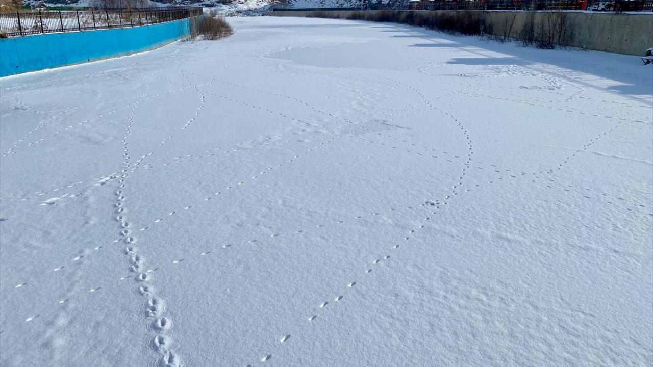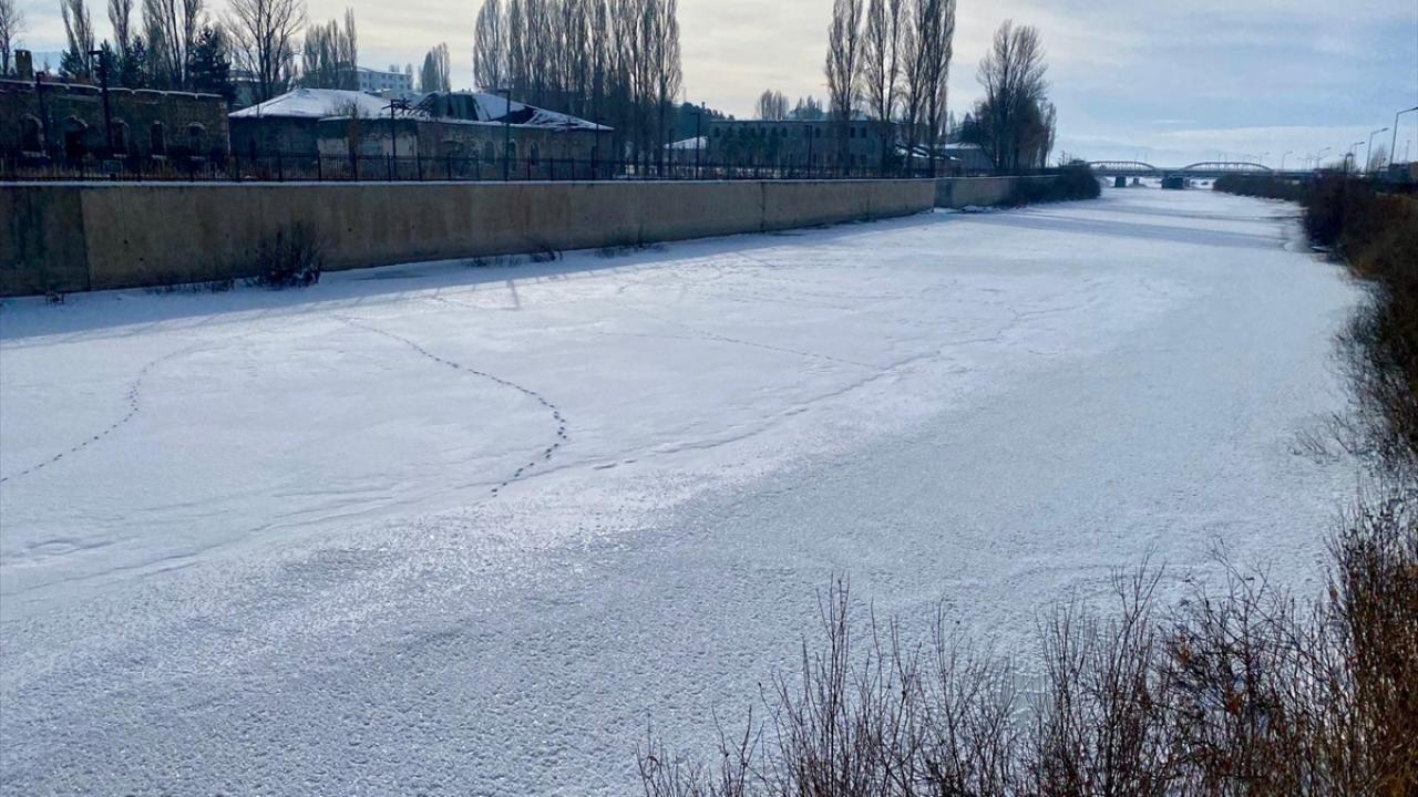 Yol ve kaldırımların yanı sıra akarsuların yüzeyi de buzla kaplandı.