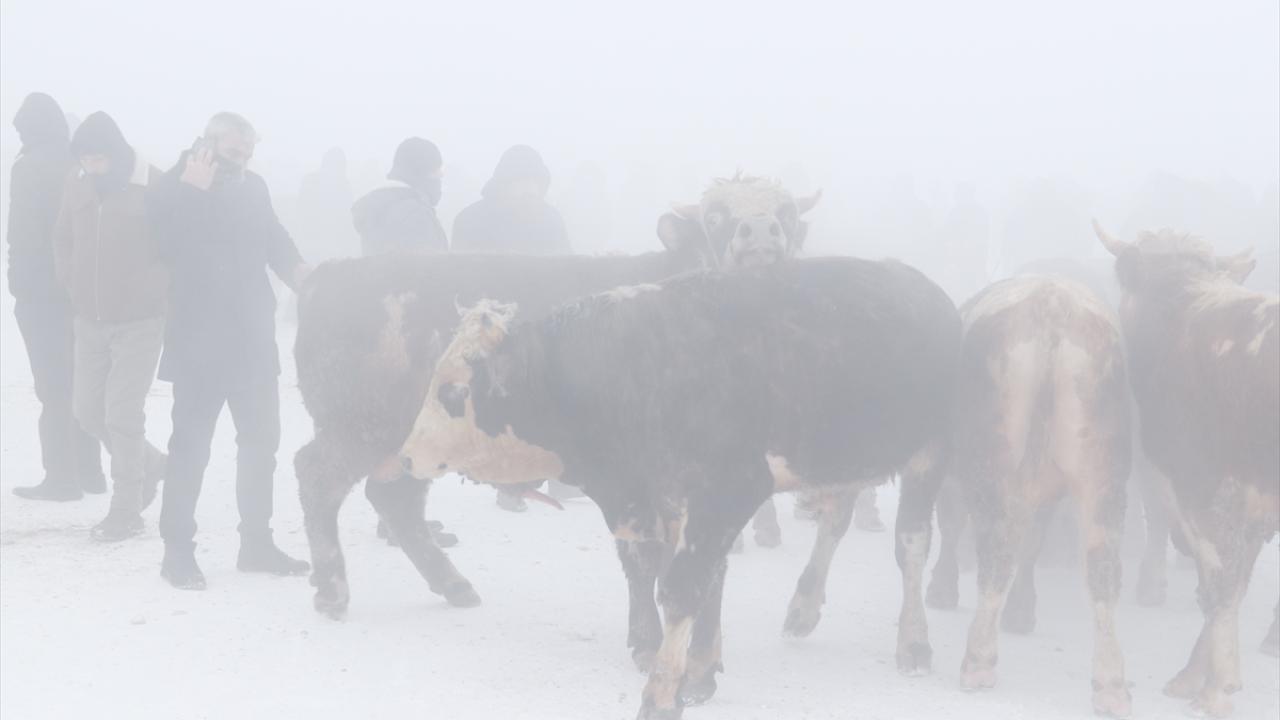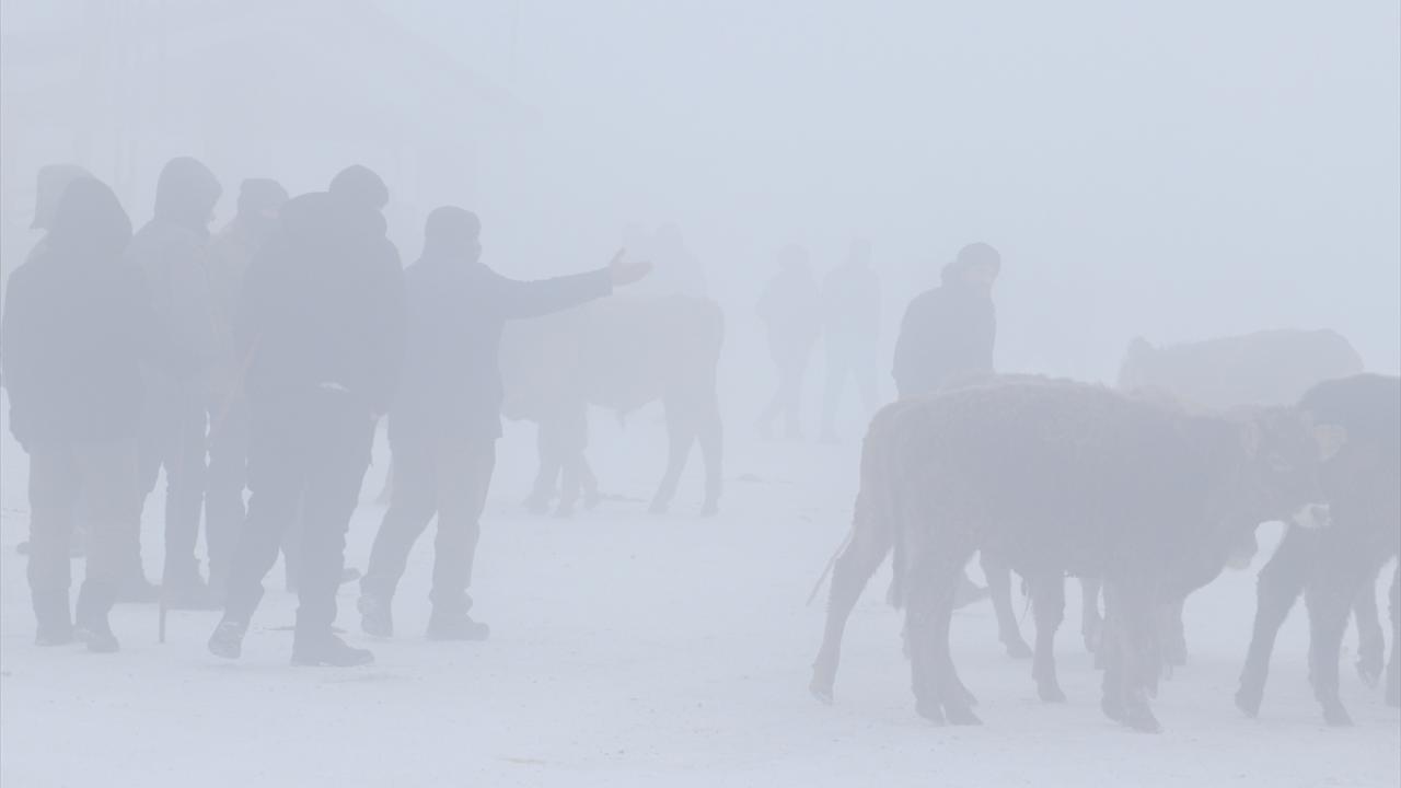 Erken saatlerde hayvan borsasına gelen vatandaşlar soğuk havada zor anlar yaşadı.