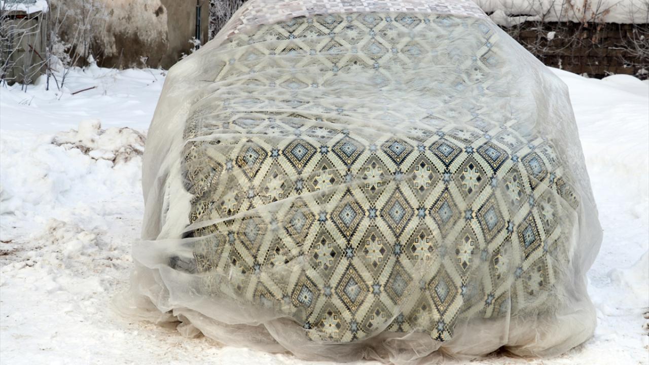 Vatandaşlar soğuklara karşı araçlarını naylon ve battaniyelerle örttü.
