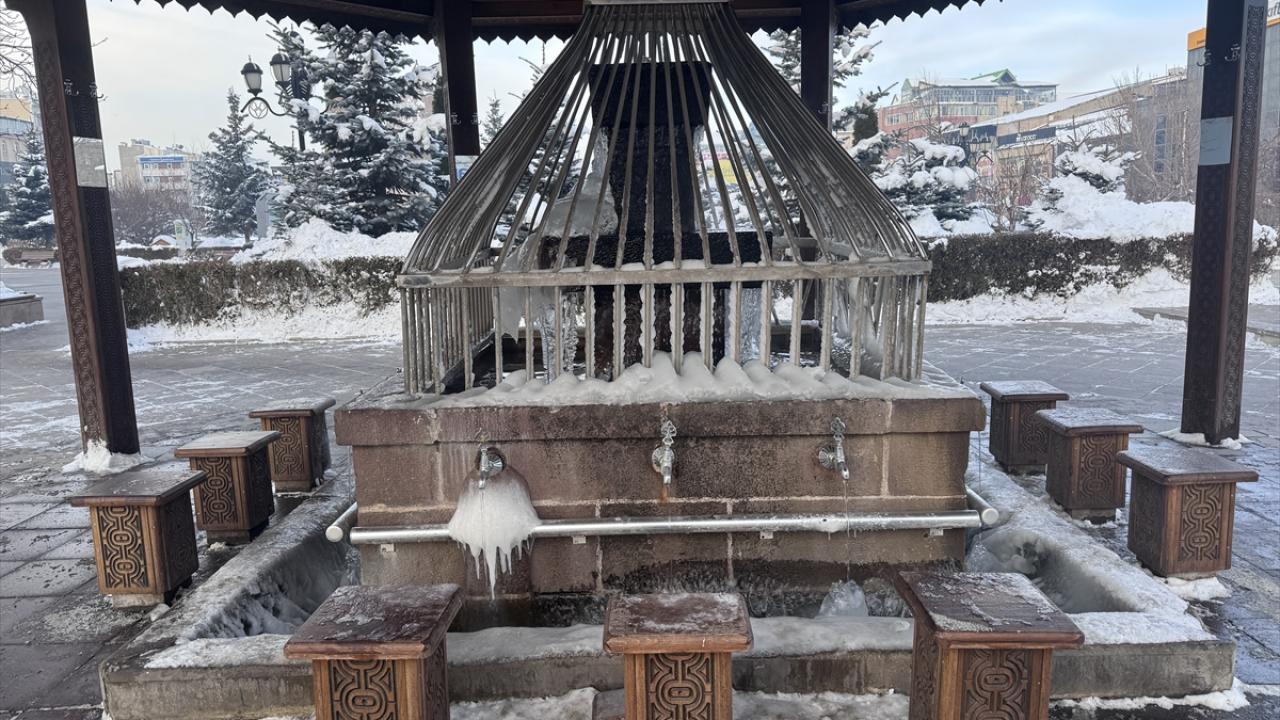 Kentteki bazı camilerin bahçelerindeki şadırvanlar da buzla kaplandı.