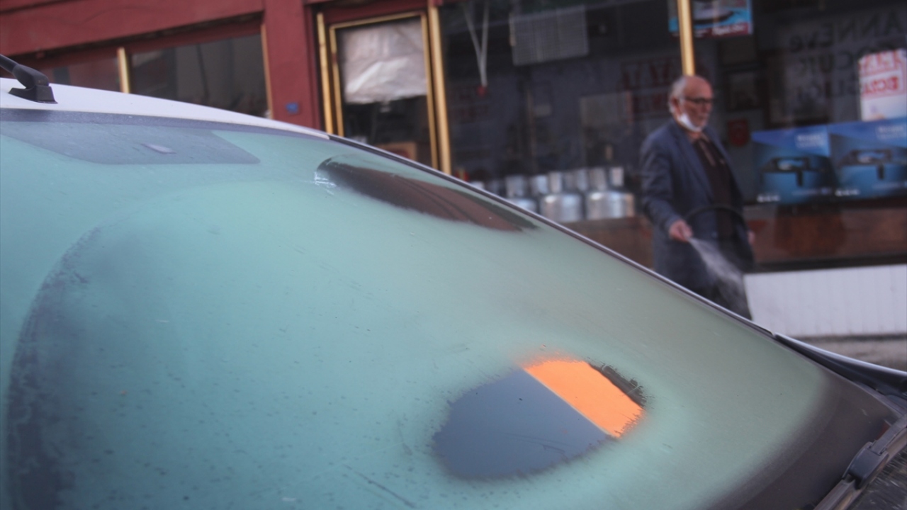 Sabah iş yerlerine giden vatandaşlar araçlarının camlarındaki kırağıyı kazıyarak temizledi.