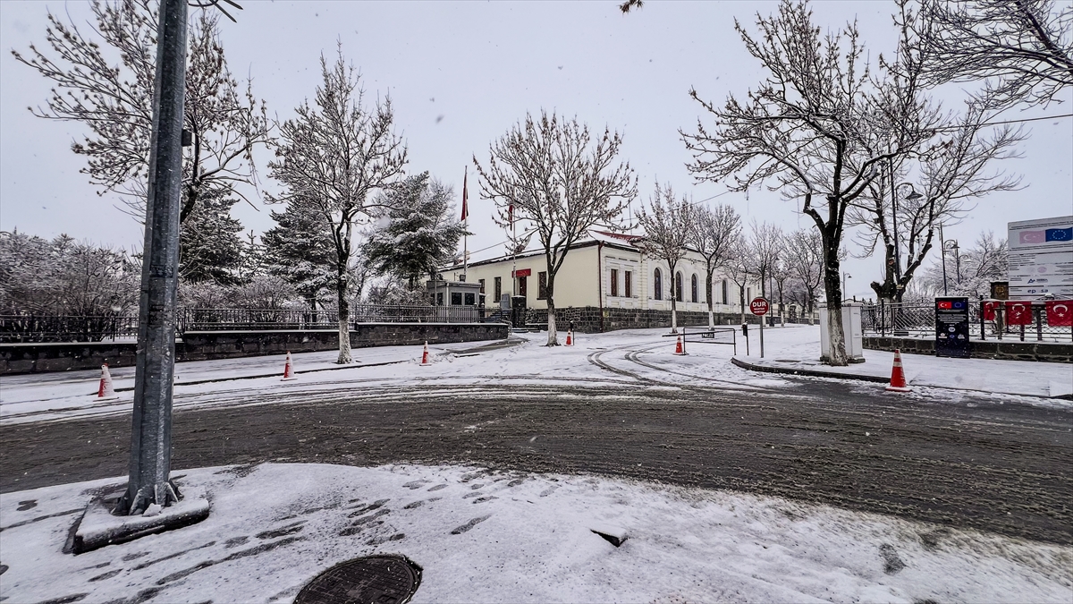 Kars`ta iki gündür aralıklarla devam eden kar yağışı şehir merkezini beyaza bürüdü.