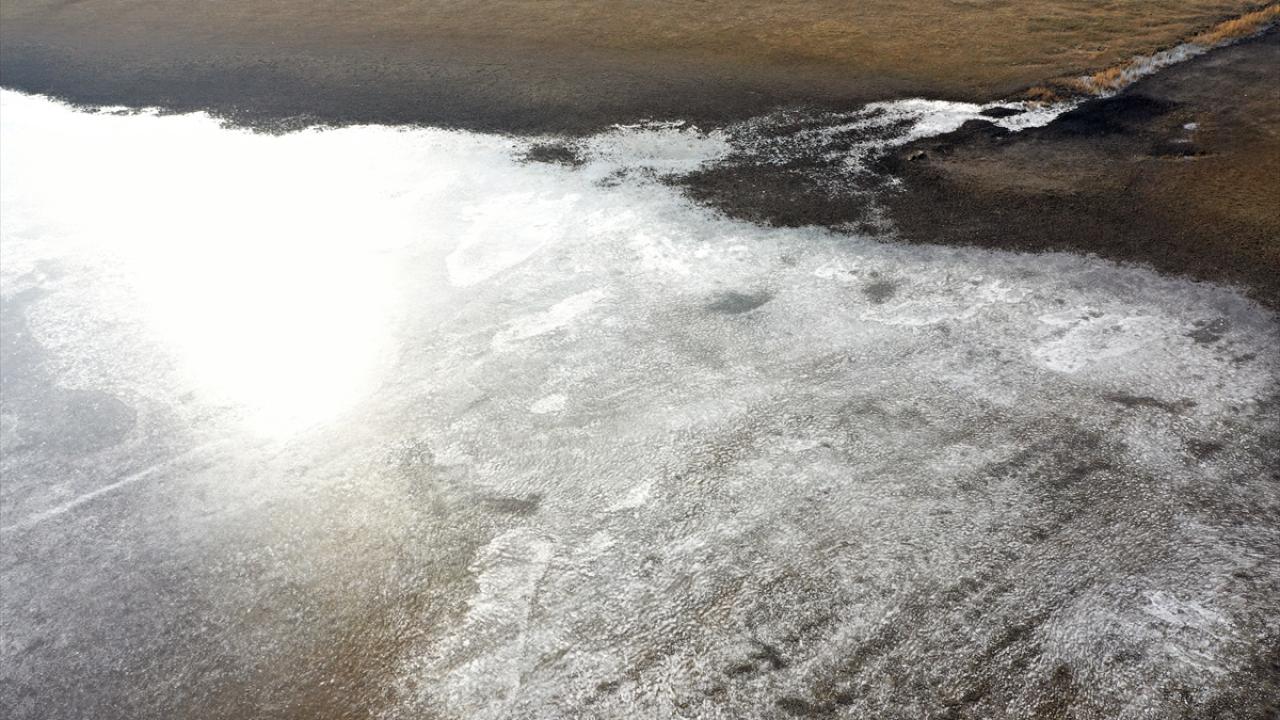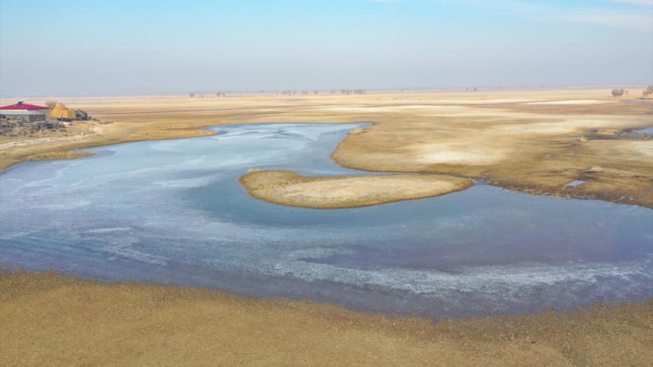Iğdır`da da hava sıcaklığının sıfırın altına düşmesiyle bazı sulak alanlar dondu.
