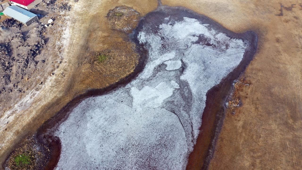 Ağrı Dağı Milli Parkı içinde bulunan ve buzla kaplanan sulak alanlar dronla görüntülendi.