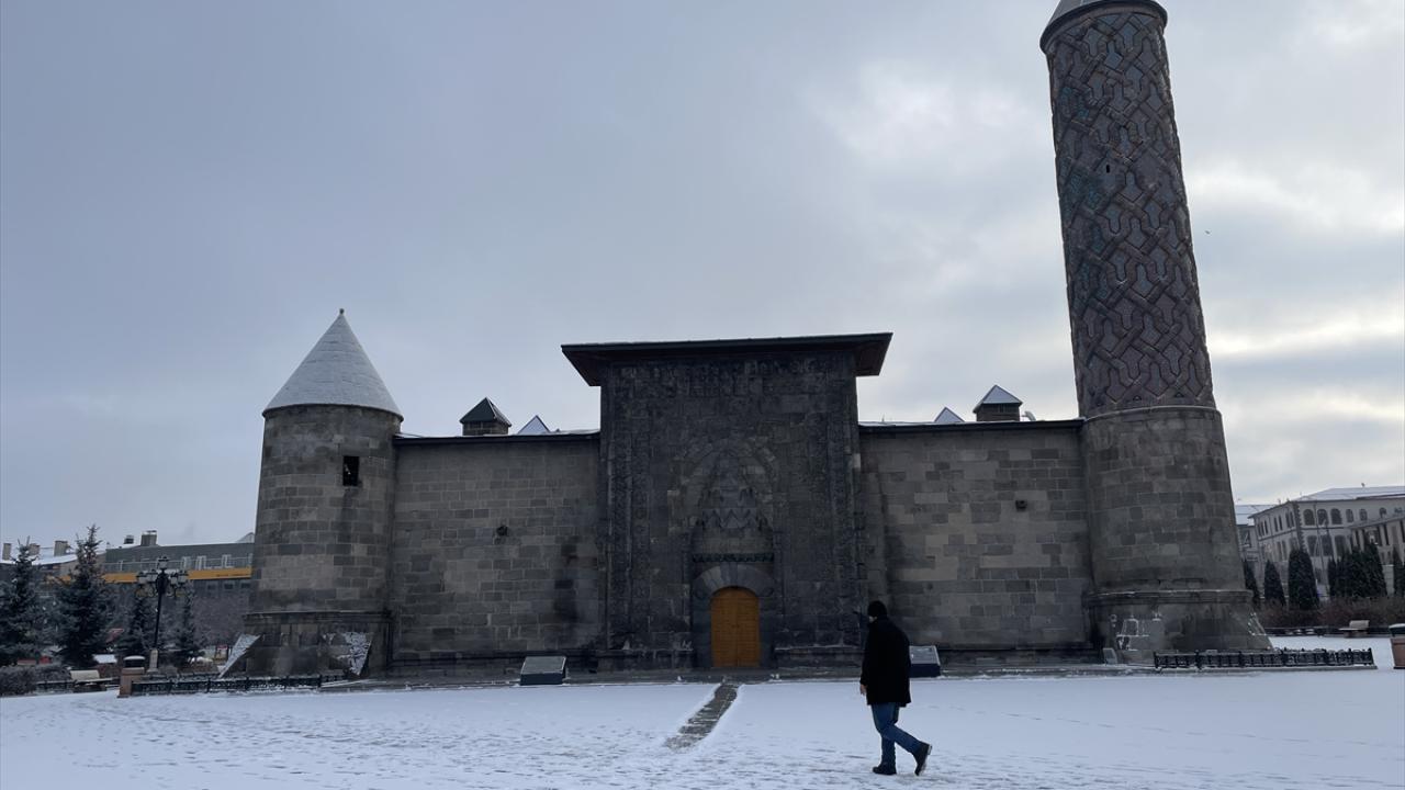 Tarihi Çifte Minareli Medrese, Erzurum Kalesi, Üç Kümbetler, Yakutiye Medresesi gibi çok sayıdaki tarihi eser beyaza büründü.