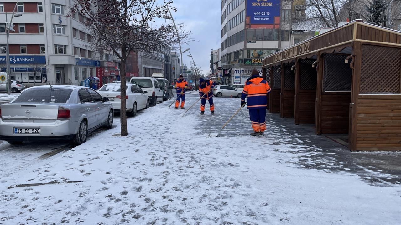 Büyükşehir Belediyesi temizlik ekipleri de kaldırımlarda kar küreme yaptı.