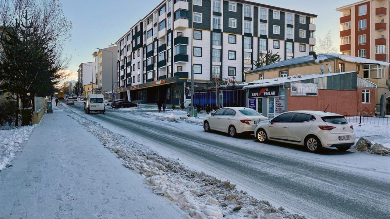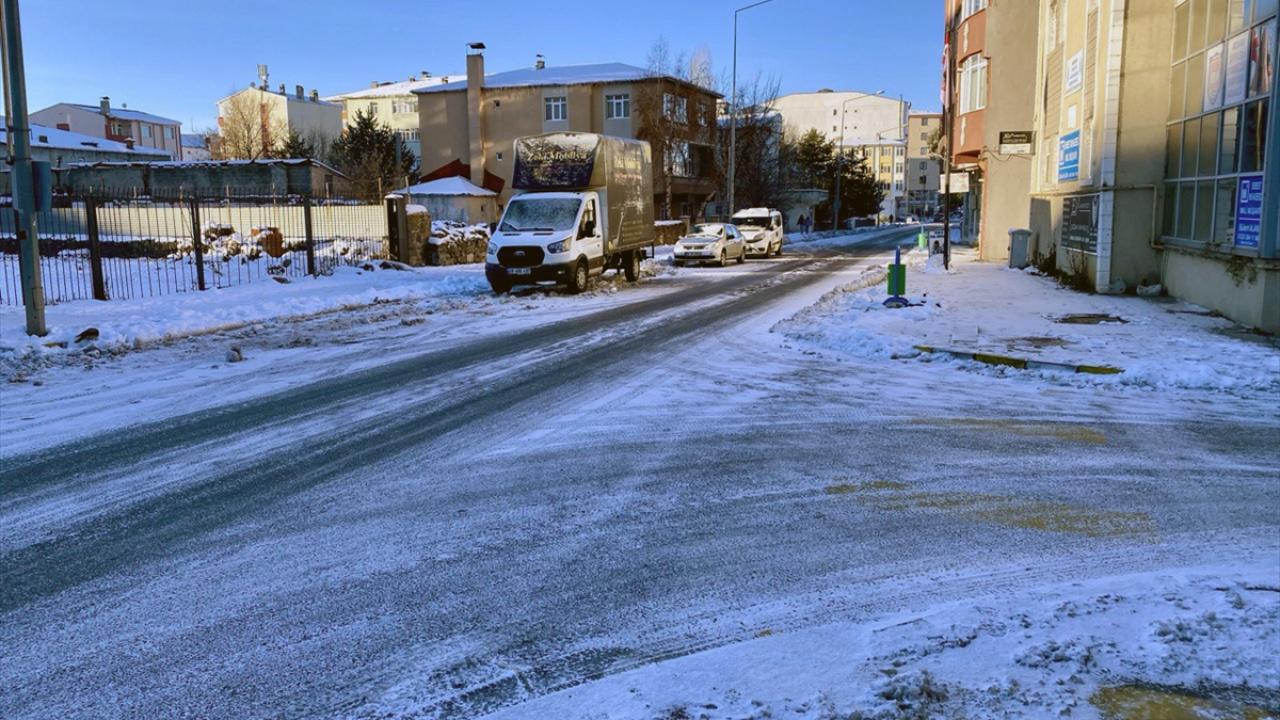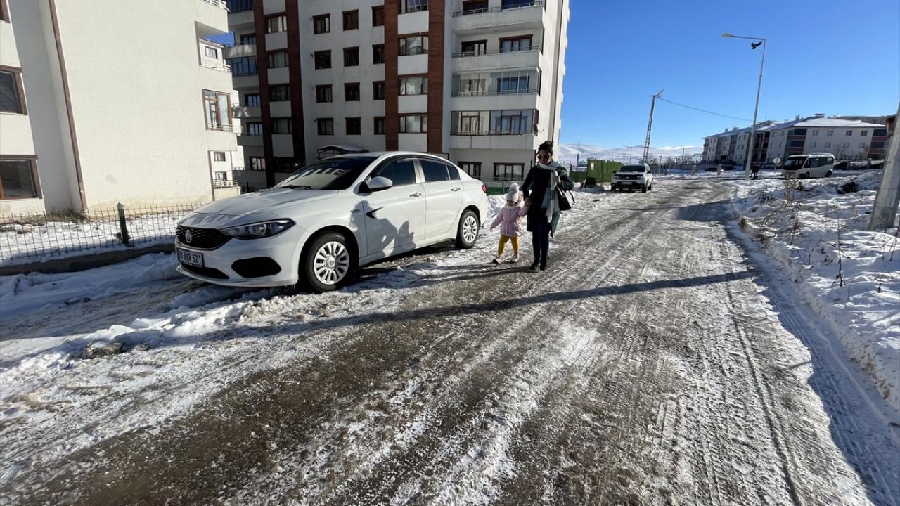 Soğuk havanın etkisiyle Erzurum`da yol ve kaldırımlarda buzlanma meydana geldi, araçların camları buzla kaplandı.