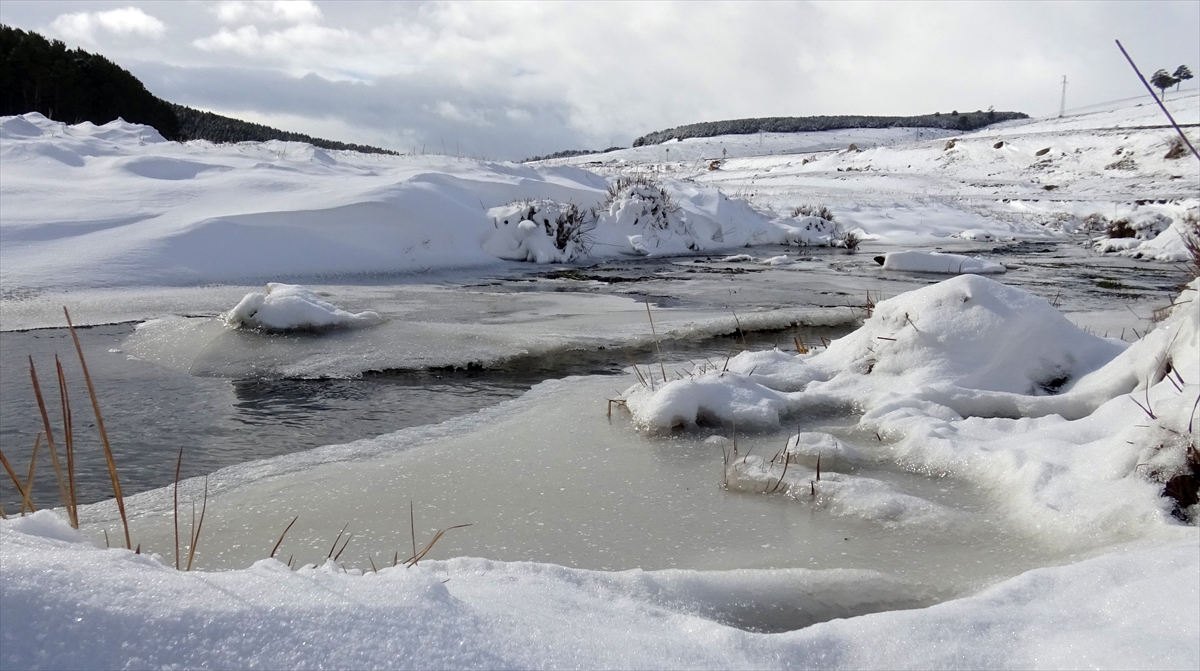 Ardahan`da merkezinde soğuk hava buzlanmaya neden oldu, yüksek kesimlerde kar etkisini gösteriyor.