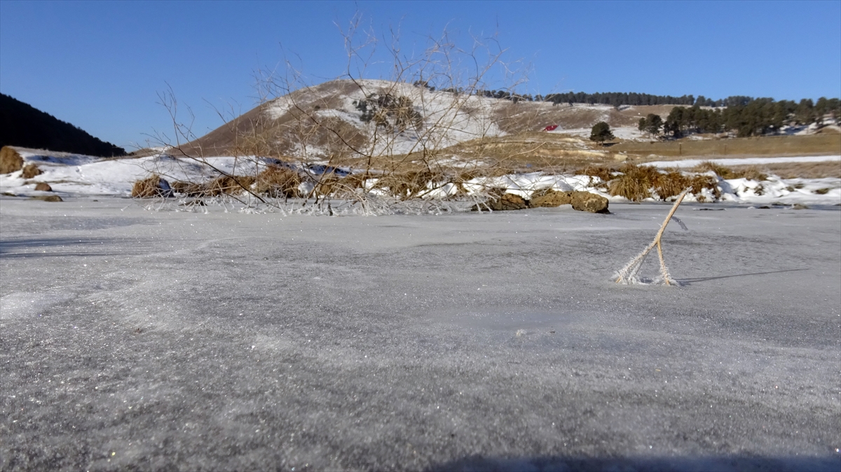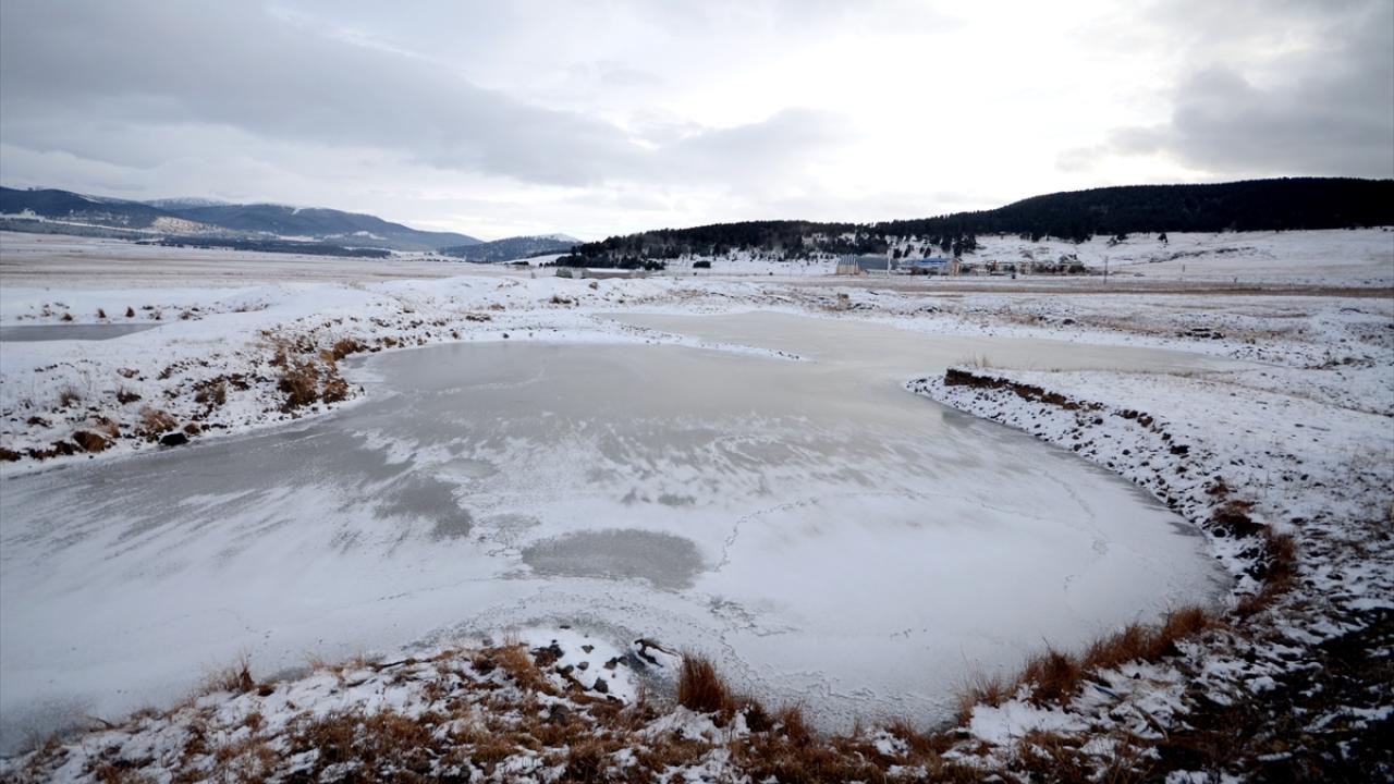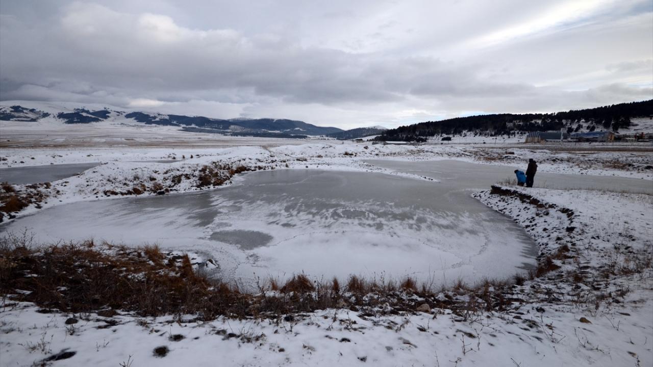 Termometrelerin gece sıfırın altında 5 dereceyi gösterdiği Kars`ta bazı göletler dondu.