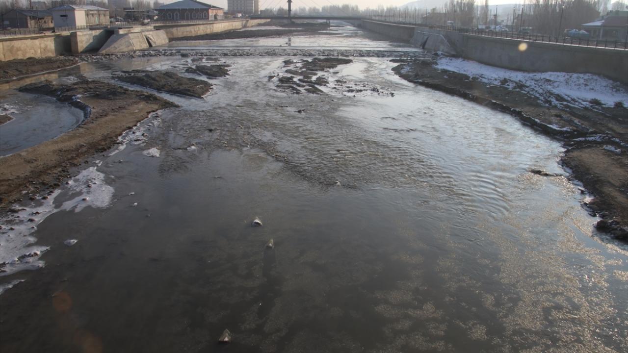 Murat Nehri`nden buz kütlelerinin aktığı kentte, ev ve iş yeri camları da buz tuttu.