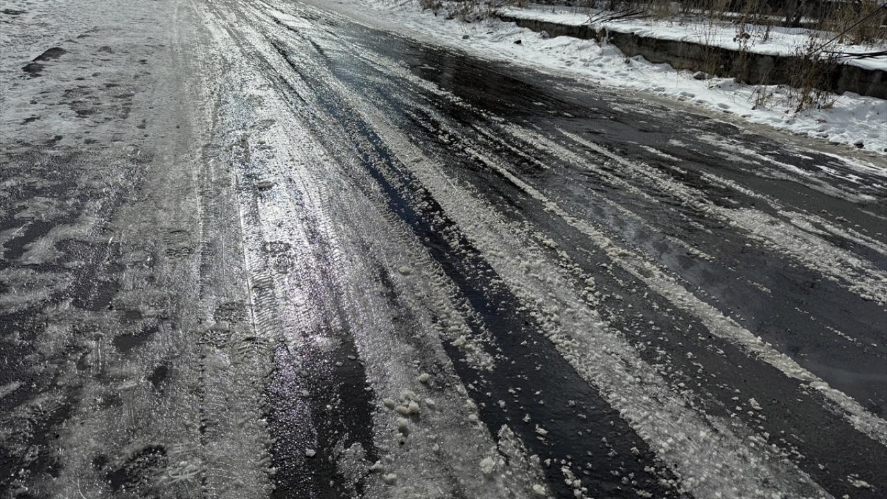 Kentte soğuk nedeniyle yol ve kaldırımlarda buzlanma oluştu.