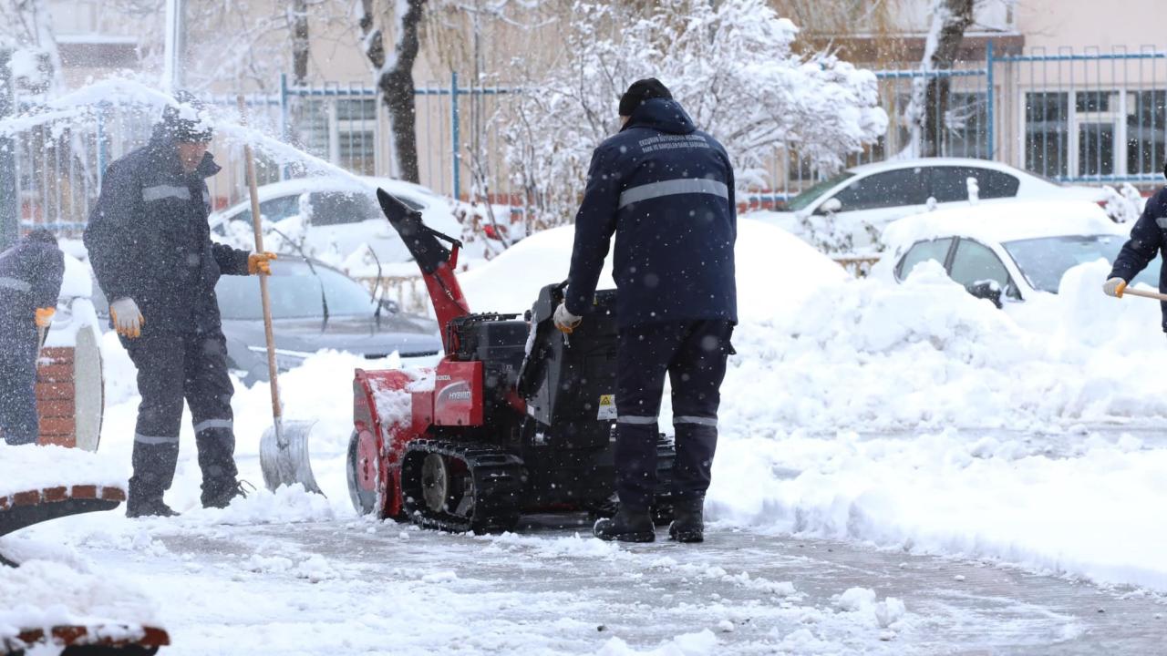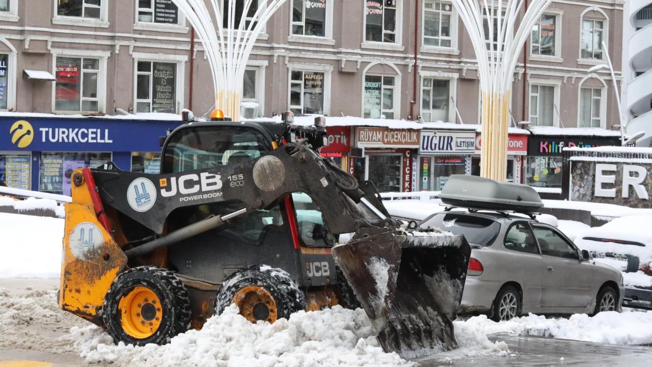 Cadde ve sokaklarda oluşan buzlar, belediye ekiplerince tuzlama yapıldıktan sonra iş makineleriyle temizleniyor.