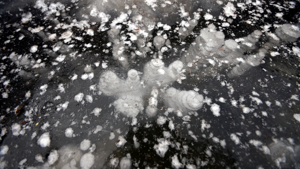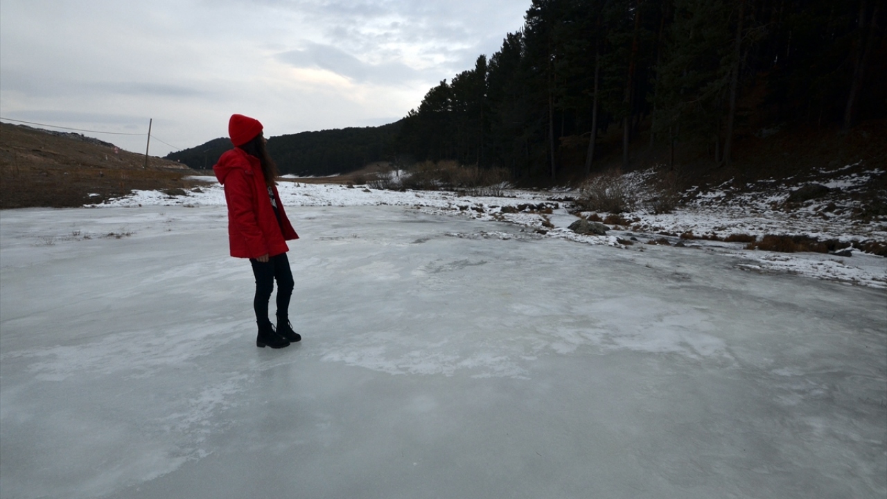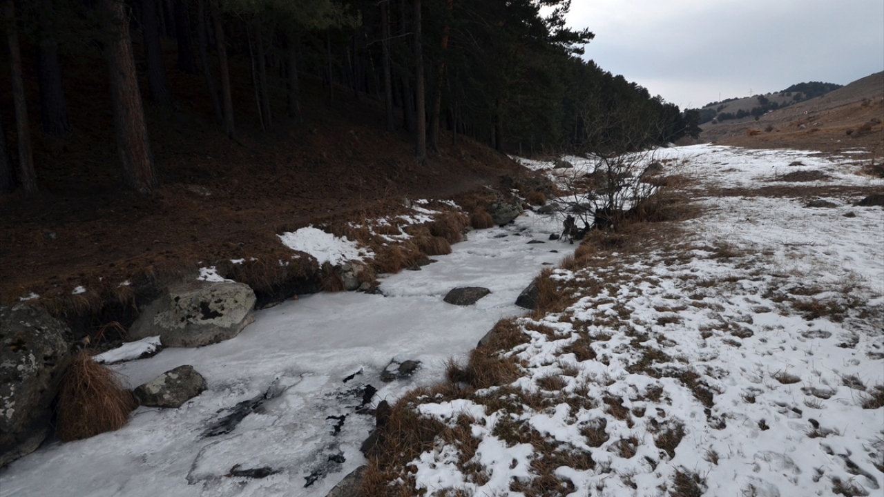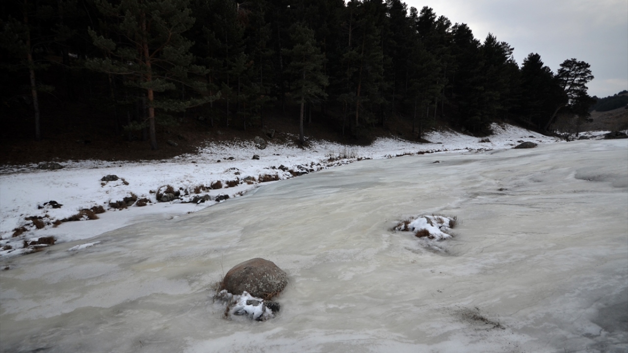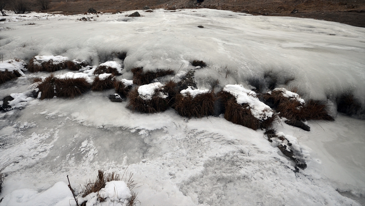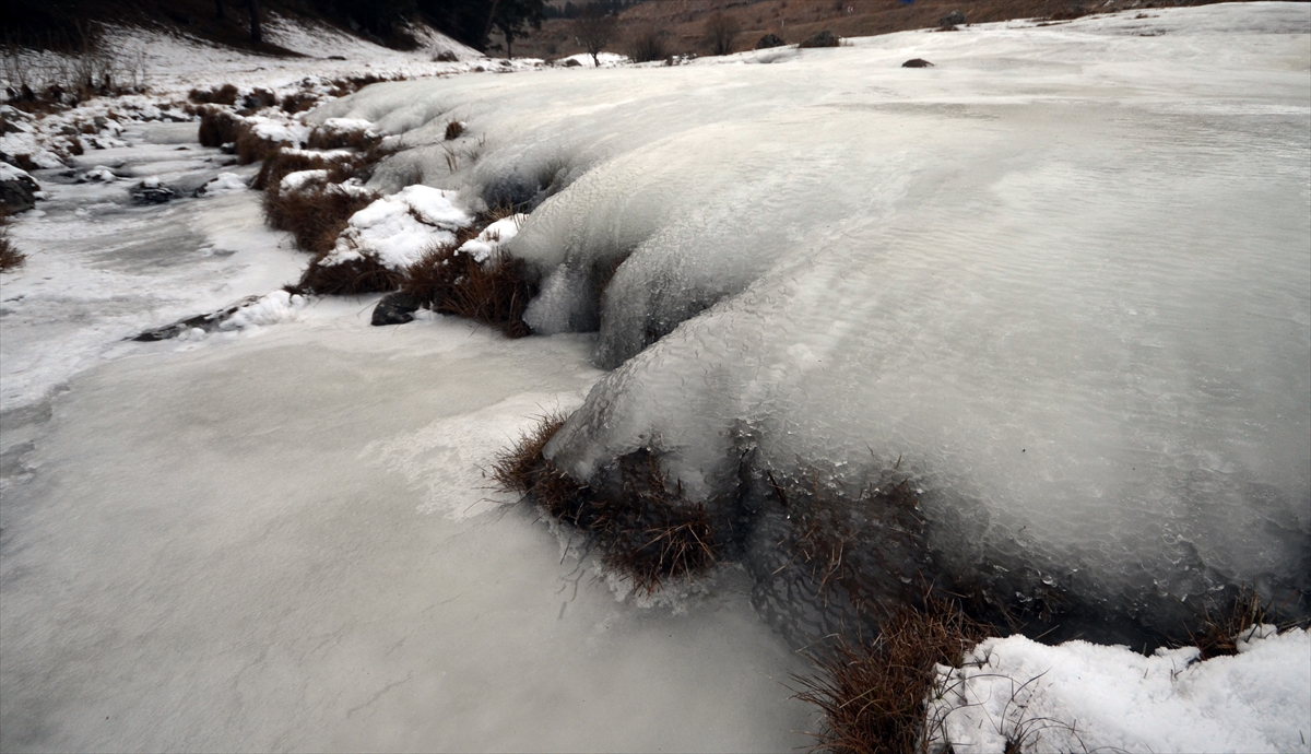 Buzla kaplanan ve travertenleri andıran dere güzel görüntüler oluşturdu.