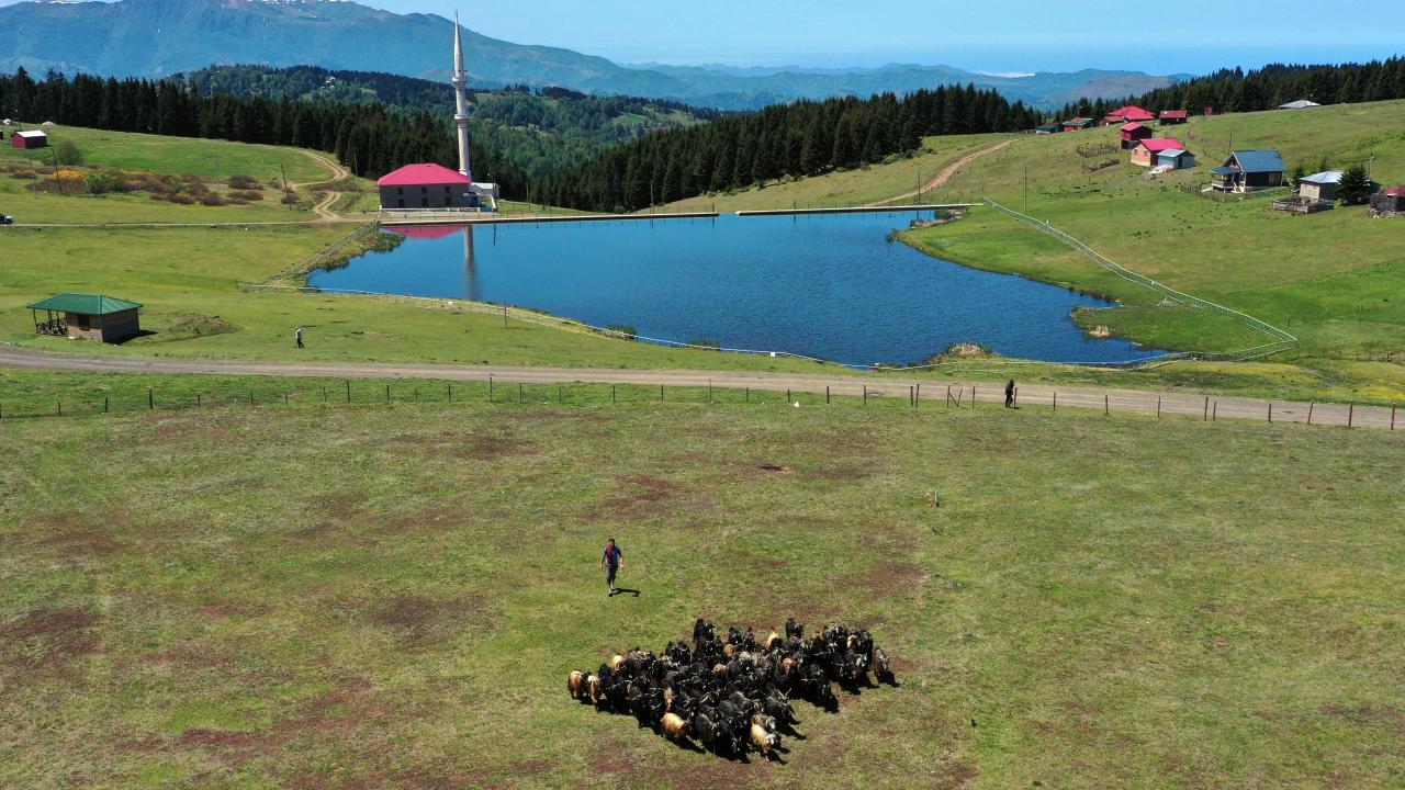 Trabzon`un Düzköy ilçesine 18 kilometre mesafedeki 2 bin rakımlı Hırsafa Yaylası`na genellikle küçükbaş hayvanlarıyla çıkan besiciler, yaklaşık 4 ay sürecek yayla sezonunu açtı.