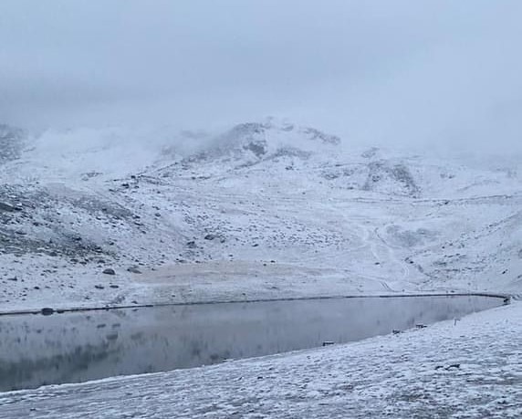 Artvin’in Yusufeli ilçesindeki Yaylalar köyü, Trabzon ile Bayburt arasında yer alan Haldizen Dağları`nın zirvesindeki 2 bin 740 metre rakımdaki Aygır Gölü kar yağışı sonrası beyaz örtü ile kaplandı.