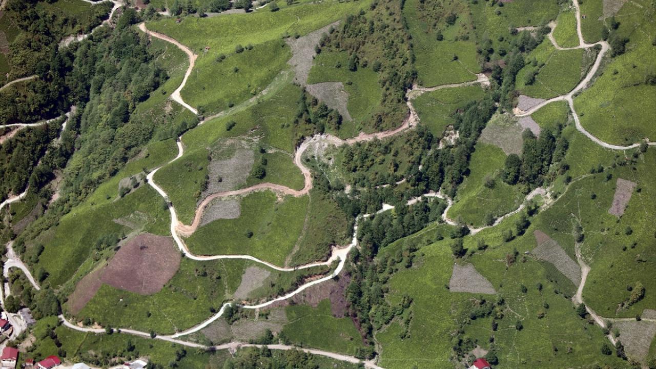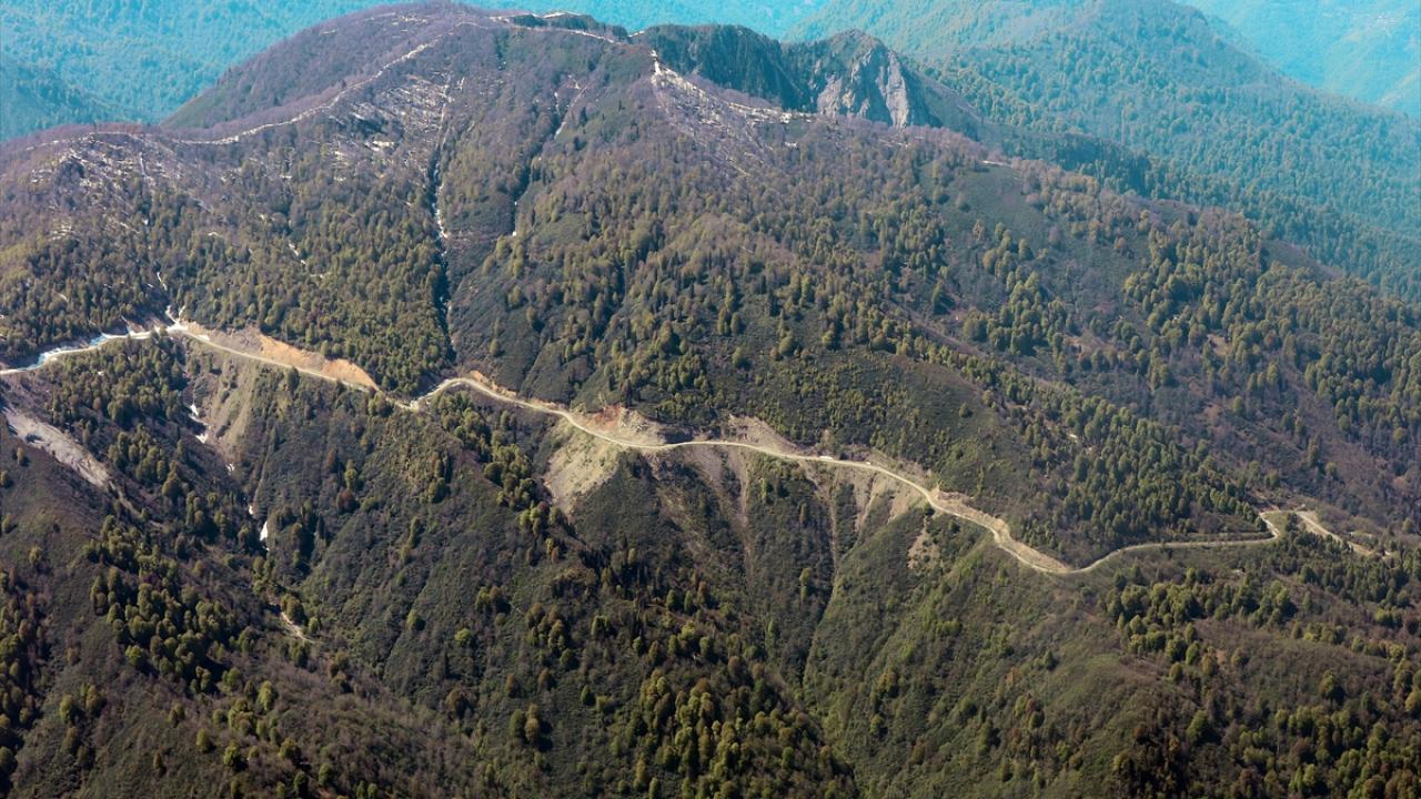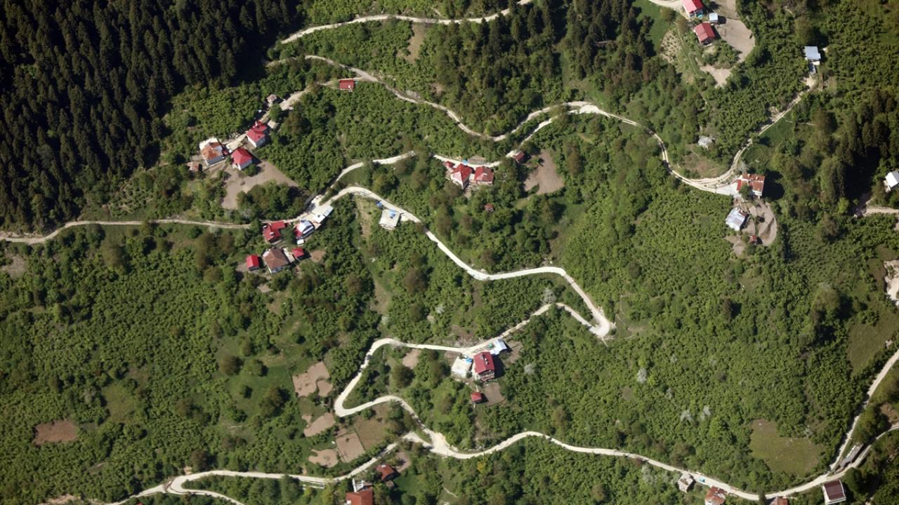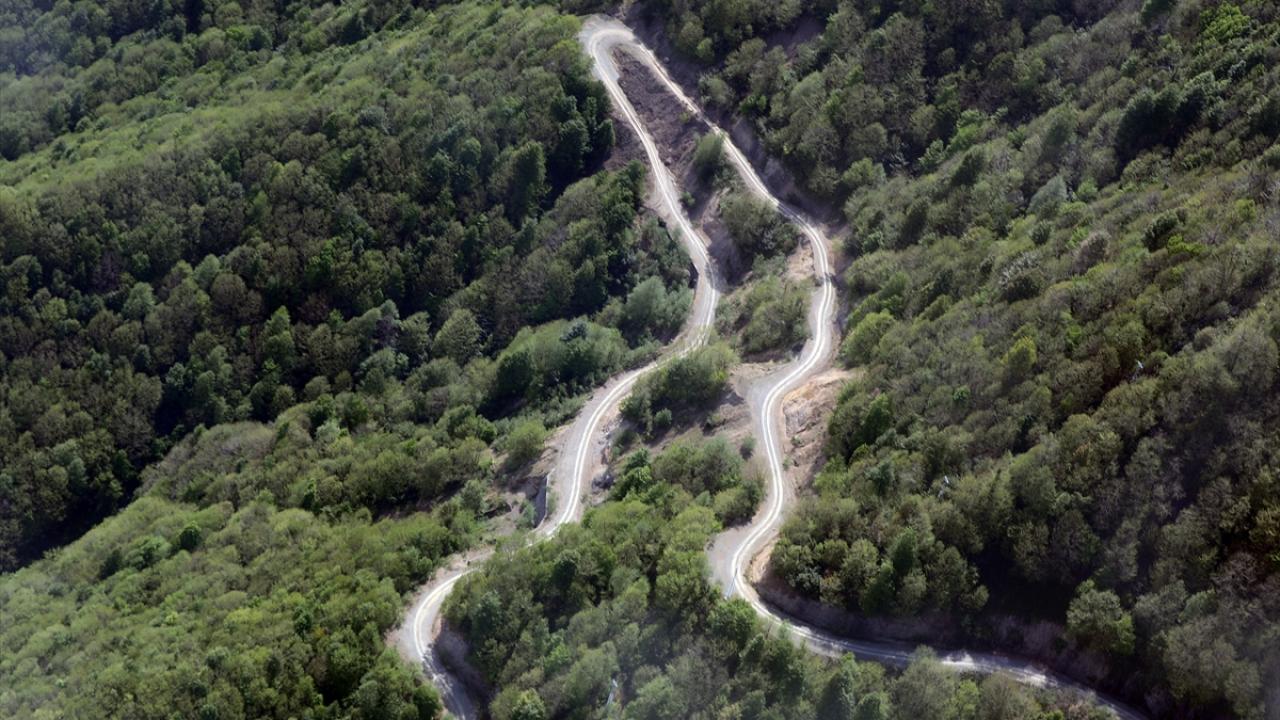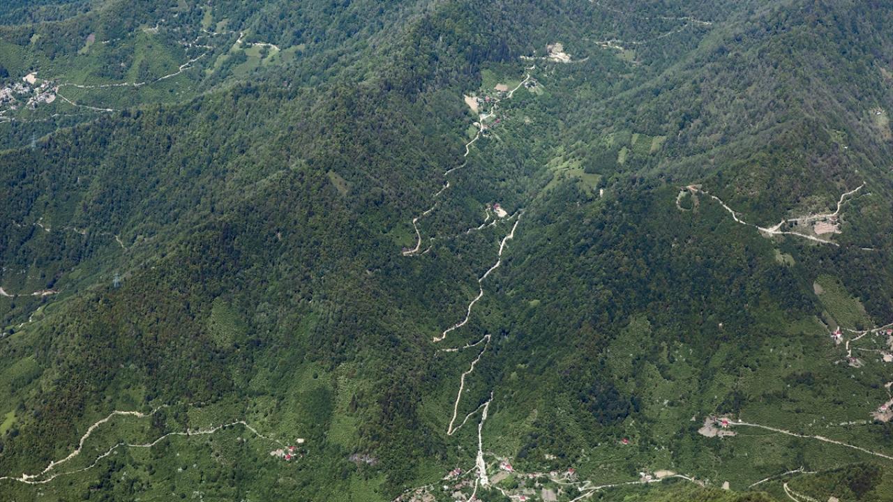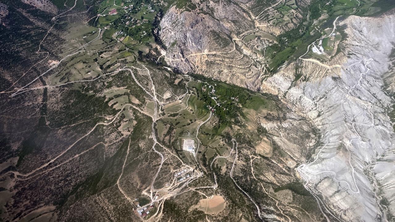 AA ekibince helikopterden görüntülenen yollar, bölgedeki dağlık arazilerde ulaşımın zorluğunu gözler önüne seriyor.
