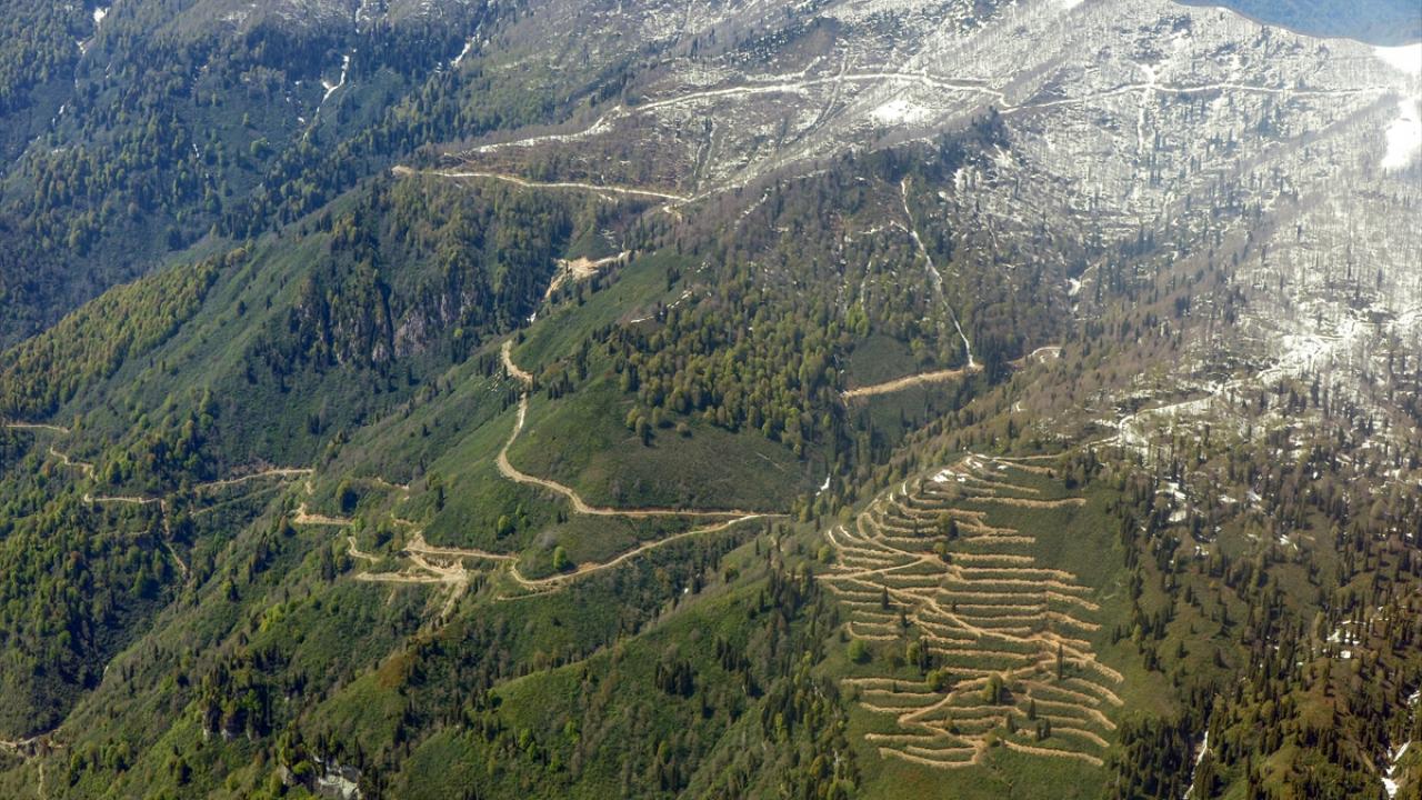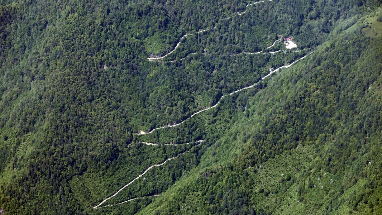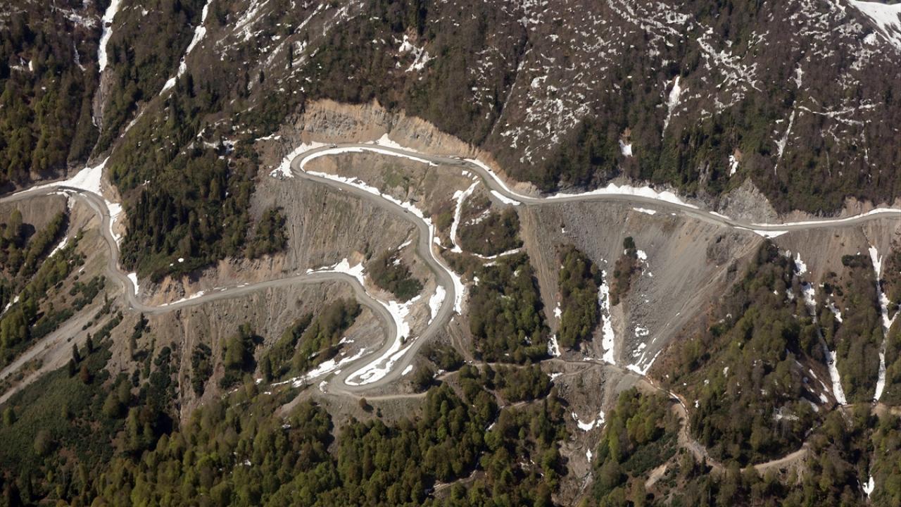 Artvin`in Şavşat, Borçka ve Hopa ilçelerinde, ağaçlık ve kayalık alanlarda zorlu çalışmalar sonucu açılan yollar, kıvrım kıvrım şekilleriyle ilgi çekici görüntüler sunuyor.