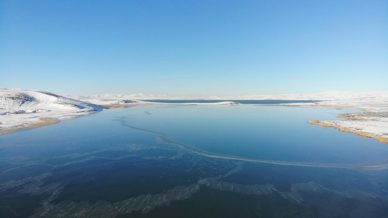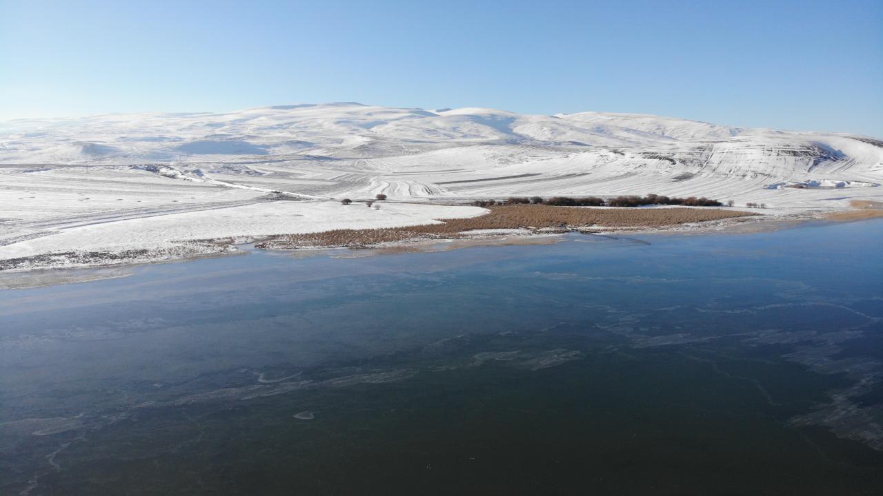 Doğu'da dondurucu soğuklar: Çıldır Gölü’nün yarısı dondu