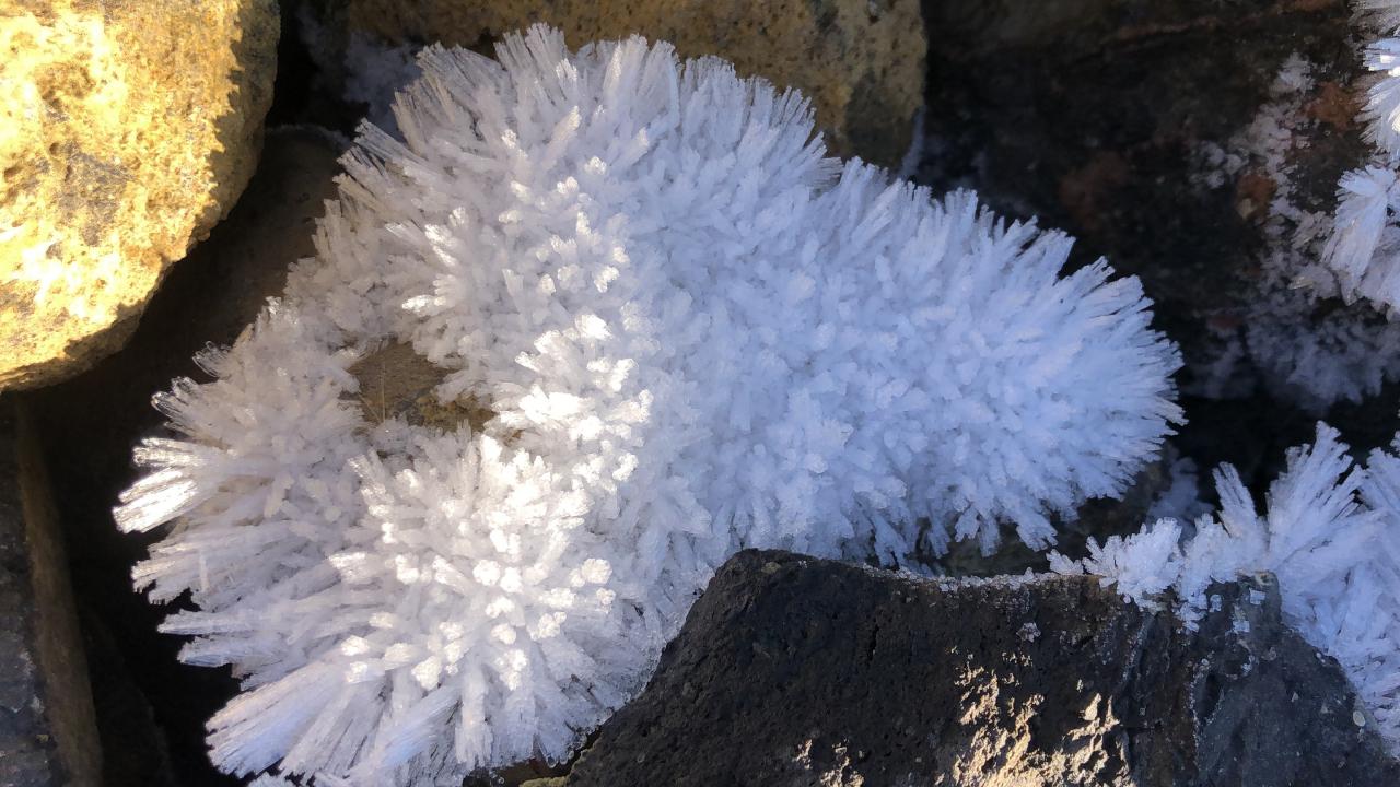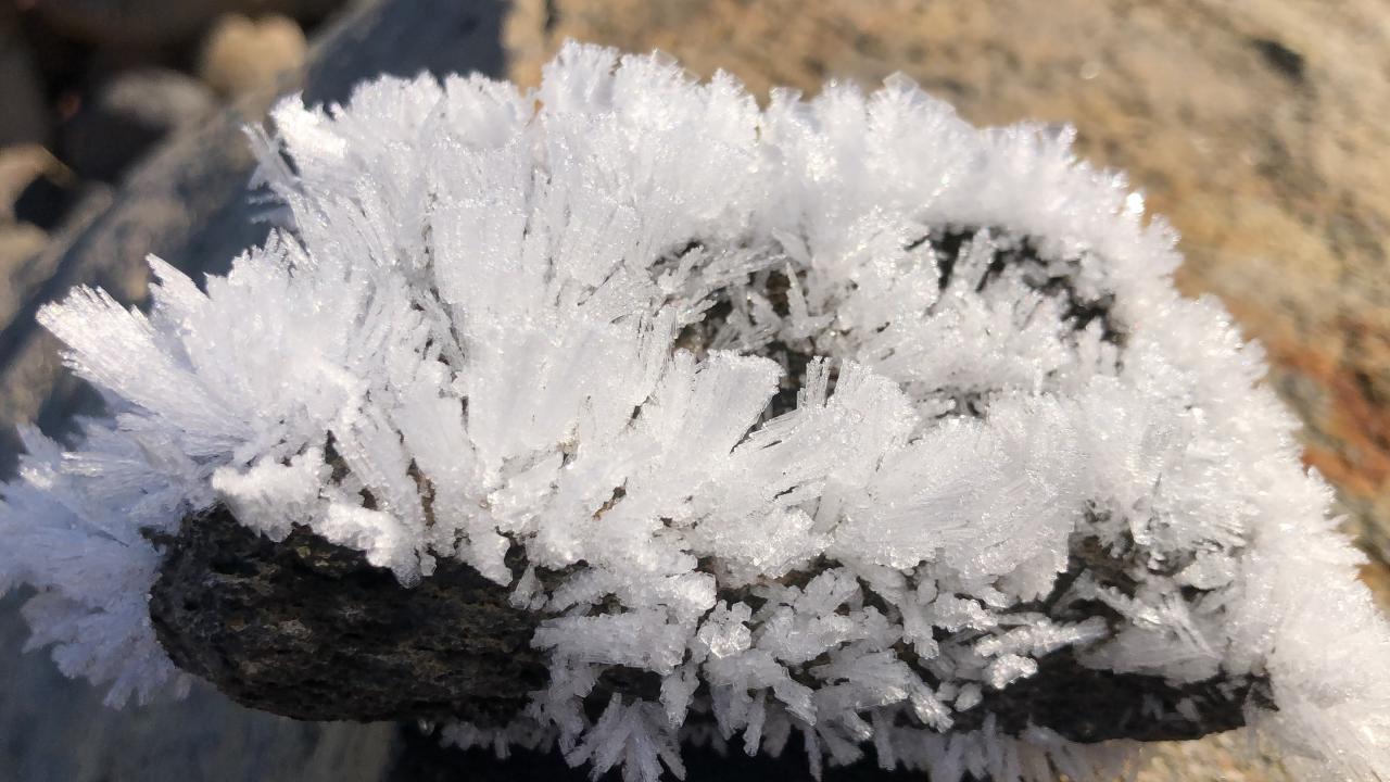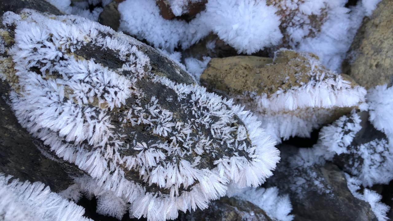 Öte yandan, kırağı tutan taşların üzerinde oluşan şekiller ise kartpostallık görüntüler ortaya çıkardı.