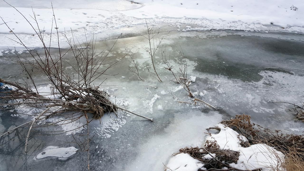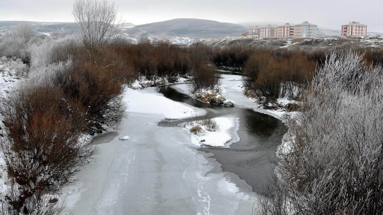 Soğuktan Çıldır Gölü’nün yarısı 15 santim kalınlığında dondu, kent merkezinden geçen Kars Çayı ve HES Barajı buzla kaplandı.