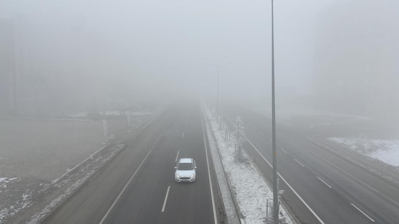 Kent merkezinin üzerini kaplayan sis bulutu nedeniyle trafikte görüş mesafesi düştü.