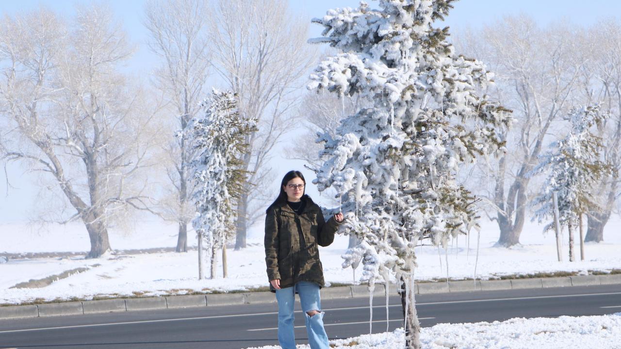 Üniversite öğrencisi Özge Küçükhas, "Burası Erzurum, ağaçların buz açtığı yer. Kışın soğukların çilesi ile birlikte oluşturduğu güzellikler, görenleri etkiliyor ve kartpostallık görüntülere sahne oluyor" diye konuştu.